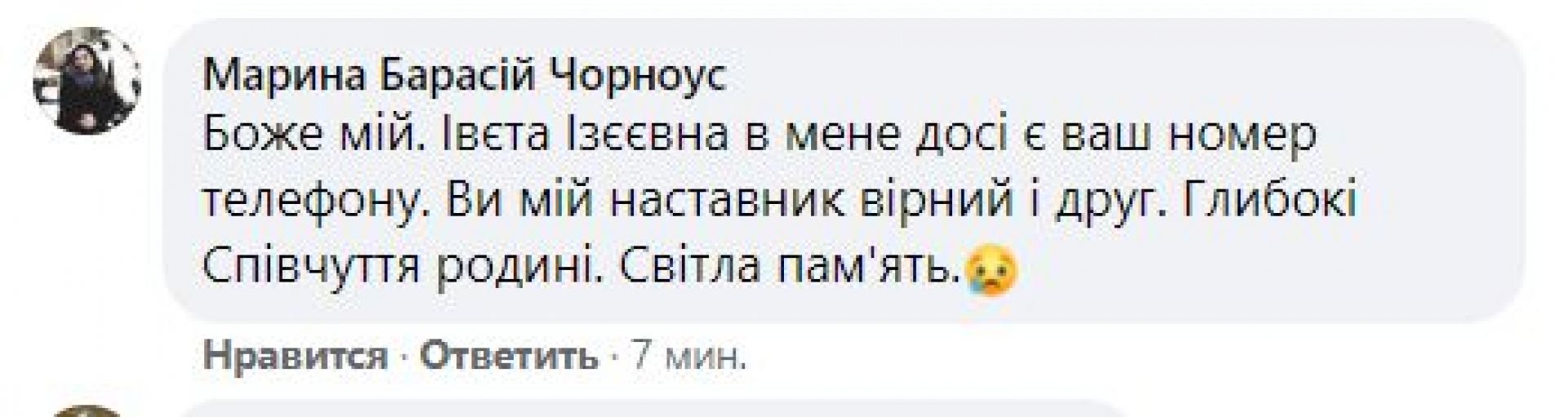 Першим про це написав чоловік вінничанки Петро Пасіхов. Він написав, що не стало Івети Ізеївни 10 березня.