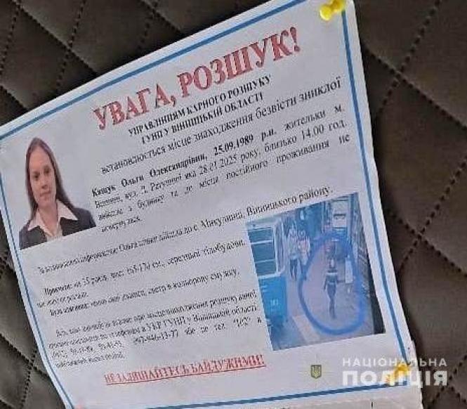 «28 січня близько 14 години вінничанка пішла з дому (проживає в м. Вінниця, вулиця Ляля Ратушної) та до цього часу не відоме місце її перебування. Востаннє камера відеоспостереження її зафіксували 29 січня близько 3 години ночі, вона вийшла з селища Літин та прямувала в бік села Микулинці».