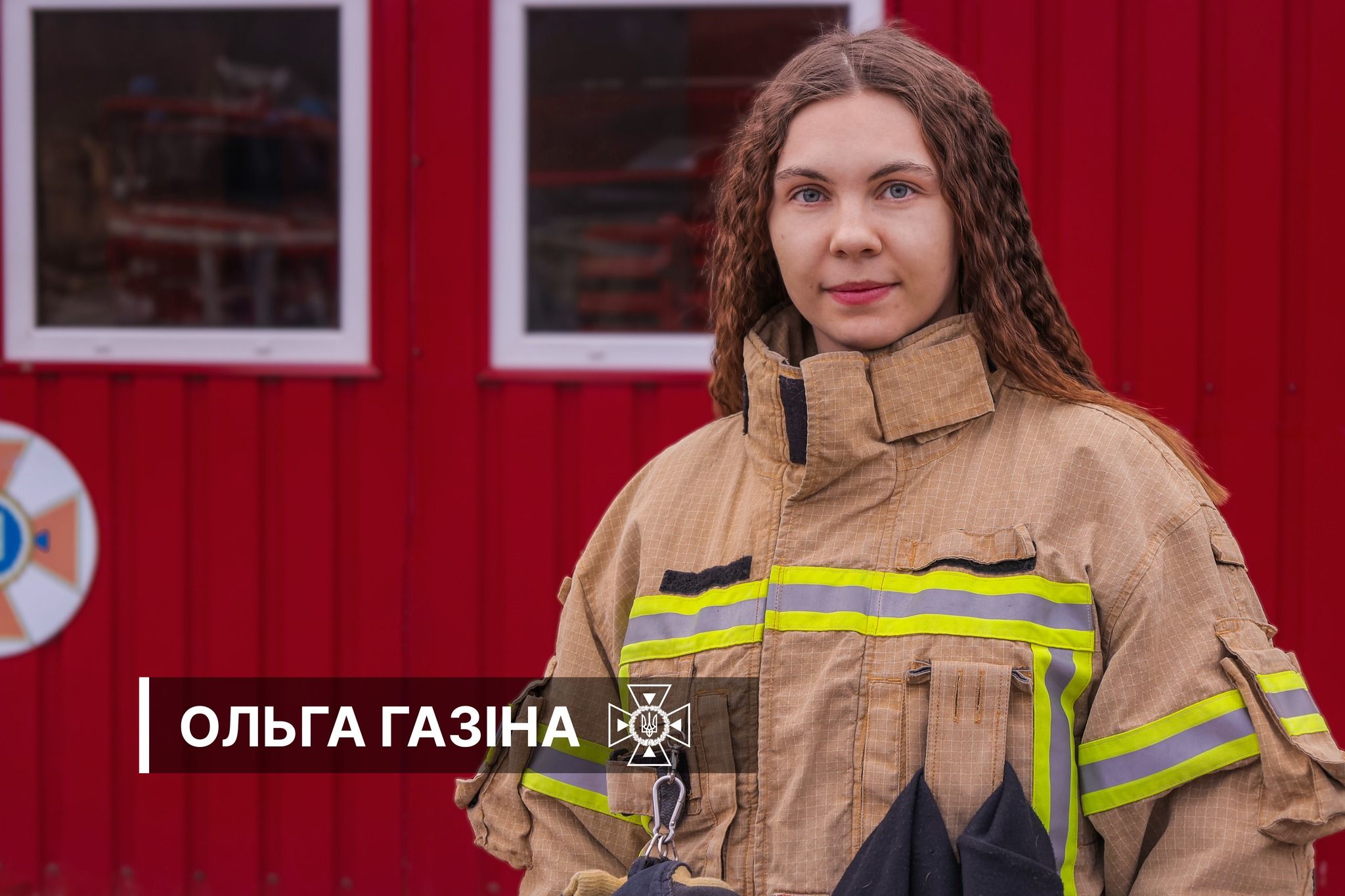Ольга Газіна — начальник пожежно-рятувального відділення аварійно-рятувального загону. Їй 22 роки. На службу в ДСНС прийшла одразу після закінчення профільного вишу у 2022 році.