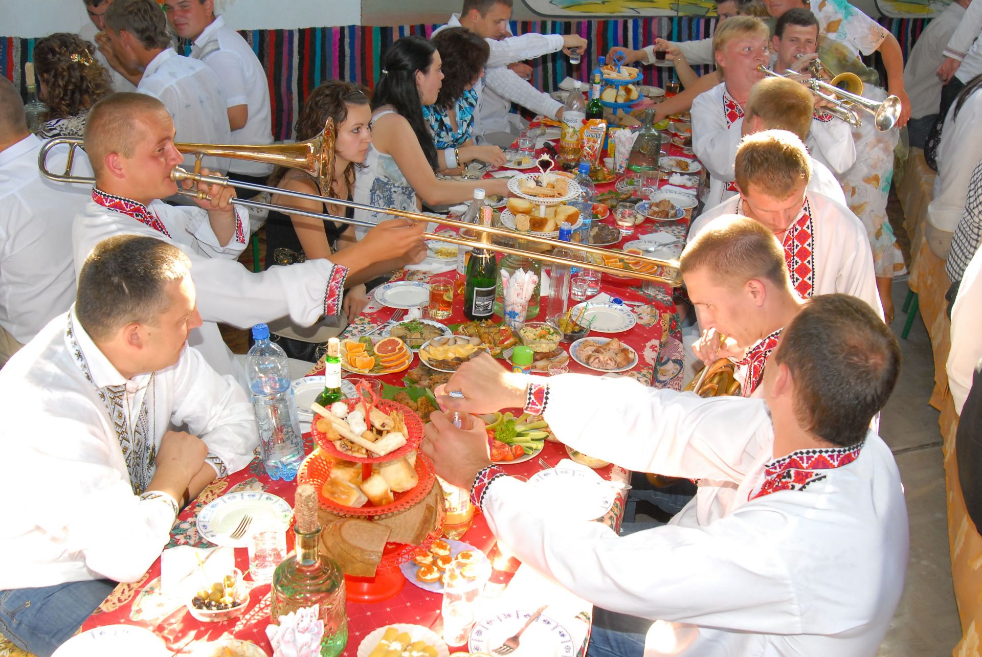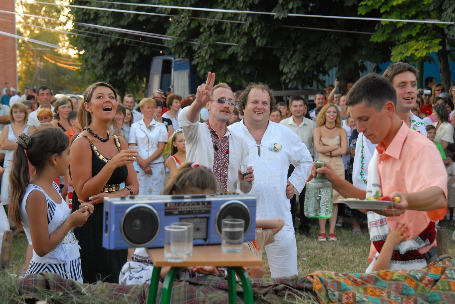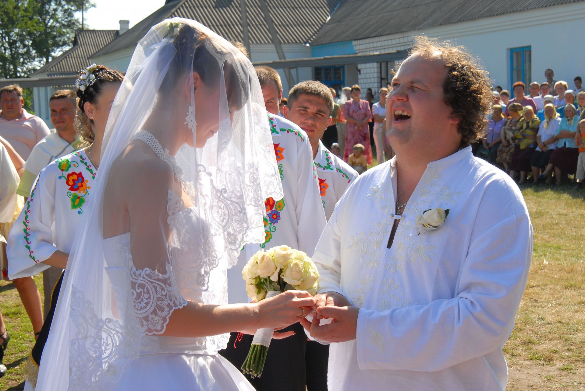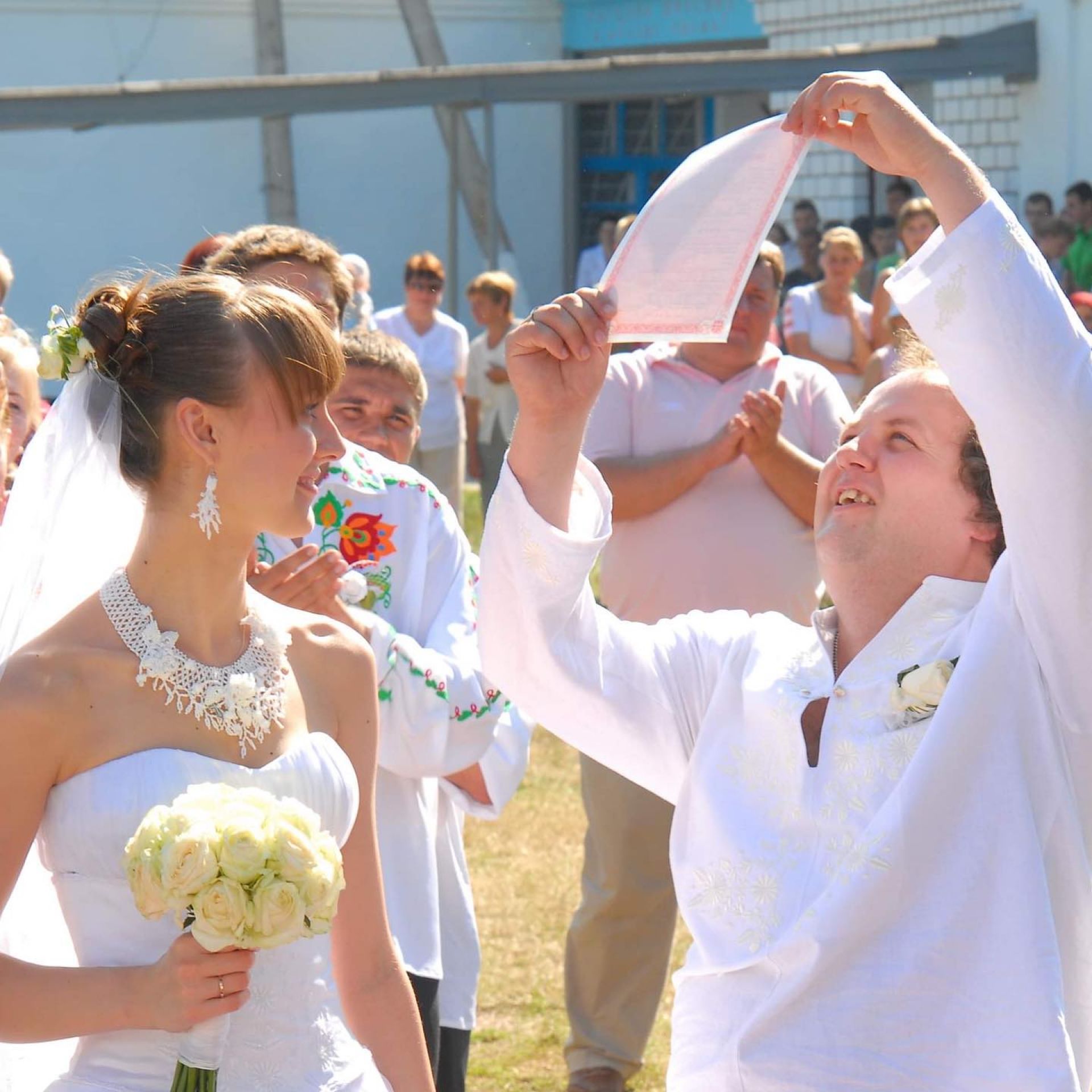 — Про святкування нашого весілля досі згадують у Соколовій, — усміхається Віктор Бронюк. — Офіційно на наше весілля було запрошено 500 людей. Але скільки їх було насправді ми не рахували. Спочатку шукали залу для святкування, але так і не знайшли. Потім вирішили: навіщо ми будемо придумувати щось? У нас же є свої неповторні українські традиції! Їх дотримались повністю: розпис влаштували прямо на подвір’ї сільської школи, столи накрили у спортивному залі, який прикрасили понад 200 вишитими рушниками, а на подвір’ї змонтували сцену й поставили воза із 10-літровим бутлем фірмового батькового самогону та бочкою із квасом для пригощання гостей. Які, до речі, залюбки дотрималися дрес-коду: прийшли у вишиванках.