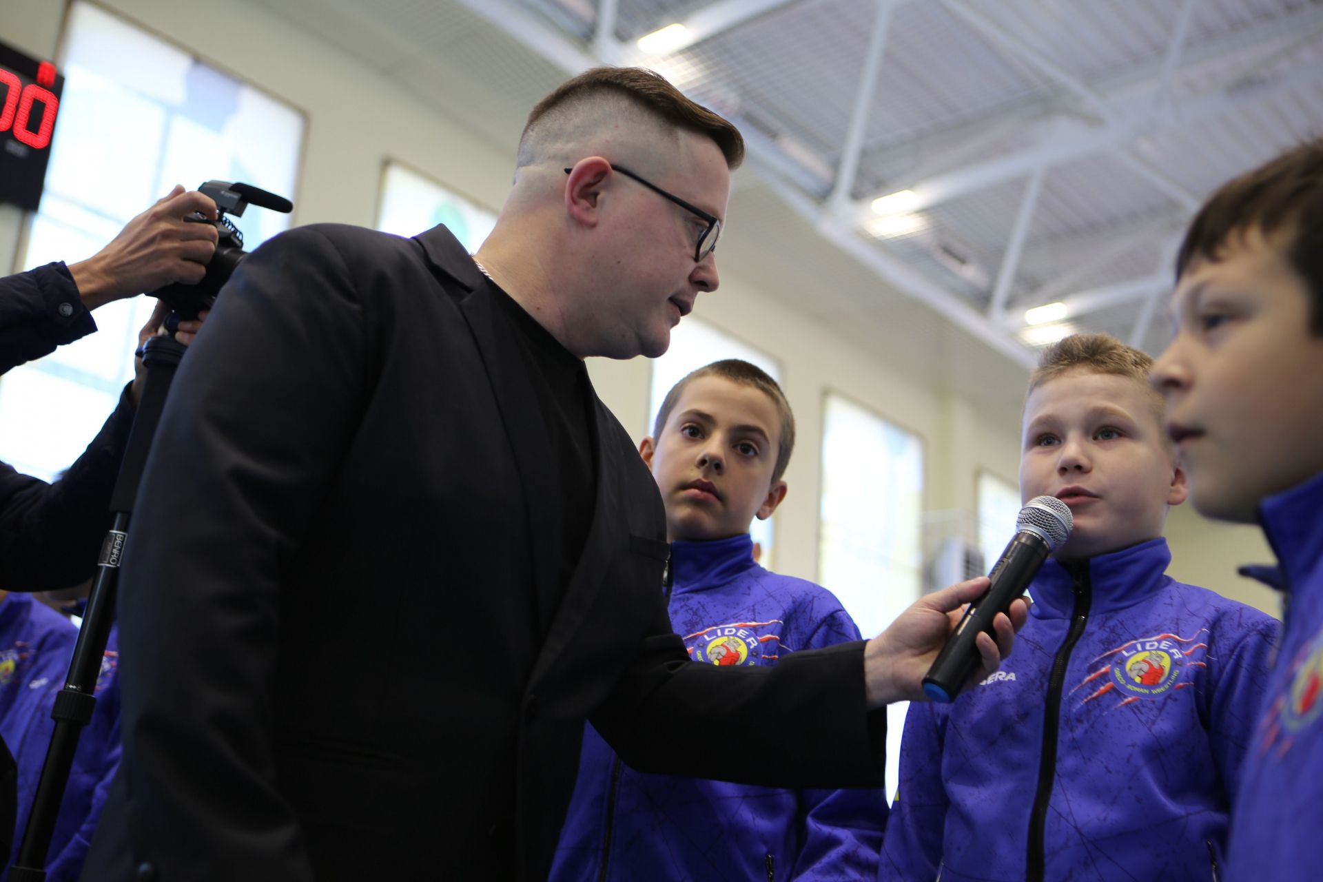 Буквально на кілька хвилин запізнився Жан Беленюк з вінницькою депутатською делегацією. У спортзалі комплексу «Здоров'я» вже вишикувалися у ряд молоді спортсмени. Вони одразу ж почали фотографувати Жана та уважно слухали, що він говорив.