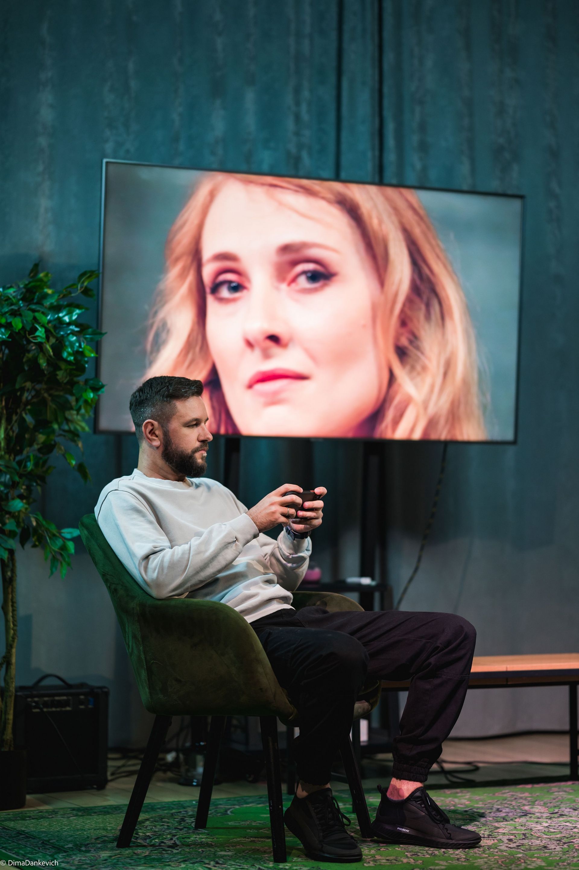 Вистава ще не розпочалася, а глядачі вже були вражені! На екрані, розміщеному посеред сцени, під час прямої трансляції вперше могли побачити, чим же насправді займаються актори перед виходом на сцену. За кулісами вони спілкуються, обіймаються, жартують та навіть віджимаються, готуючись до зустрічі із глядачами.