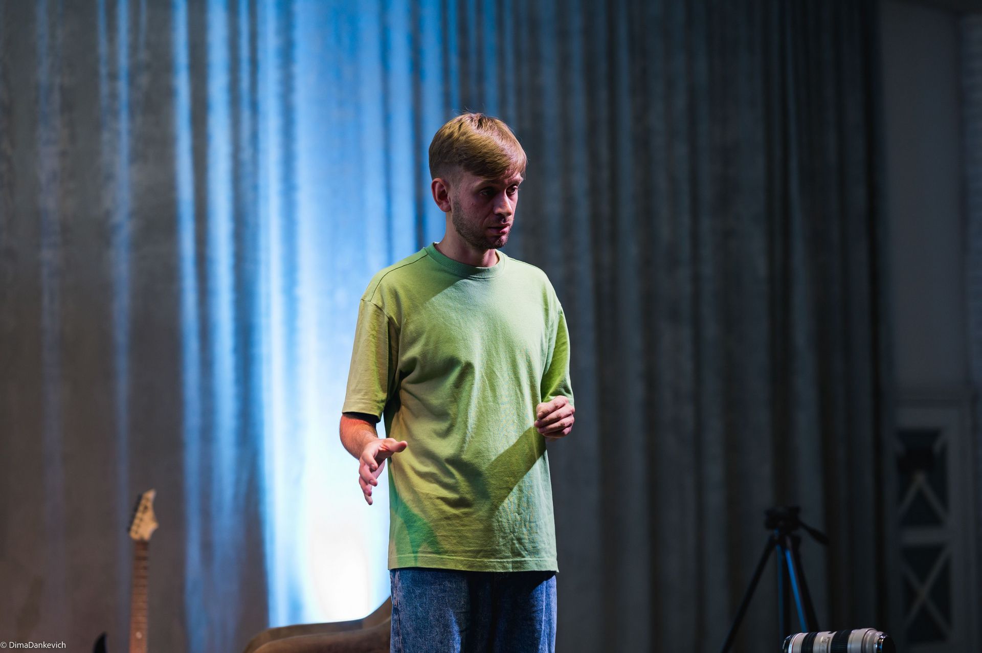 — Ніхто, крім Києва і Вінниці, виставу «Двоє» ще не бачив, — розповідає Дмитро Весельський. — Це вистава, яку ми у принципі не так багато разів встигли зіграли. Зробили її минулої осені, а потім — то карантин, то якісь інші обставини, зрештою — повномасштабна війна. Боюсь зараз сказати точну цифру, але разів чотири-п’ять ми зіграли її до початку повномасштабної війни, потім один раз у Києві в рамках фестивалю «Мельпомена Таврії» і от зараз у Вінниці. По суті це постановка, якою ми по-новому розпочали свою діяльність у час війни.
