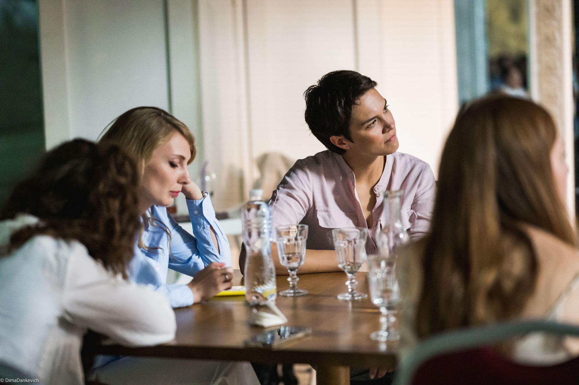 — Це насправді одне із завдань глядачів й така собі вічна інтрига й додаткова гра: вгадати, що було по-справжньому і з ким. Тут є багато таких епізодів, де грають одні актори, а насправді це історія інших акторів. Ми намагалися все переосмислити трошки збоку, мінімально втручаючись, не змінюючи те, що відбувалося у дійсності, але все-таки подаючи інакше. Адже коли це робить та людина, яка справді була учасником тих подій, вона все одно не може ставитися до цього абстраговано, не може, наприклад, якщо це болючий момент, бути об’єктивною і все одно звинувачує… Але ми дуже щиро і відверто ділилися дуже особистими речами, коли створювали цю виставу, підхоплювали один одного й ці історії.