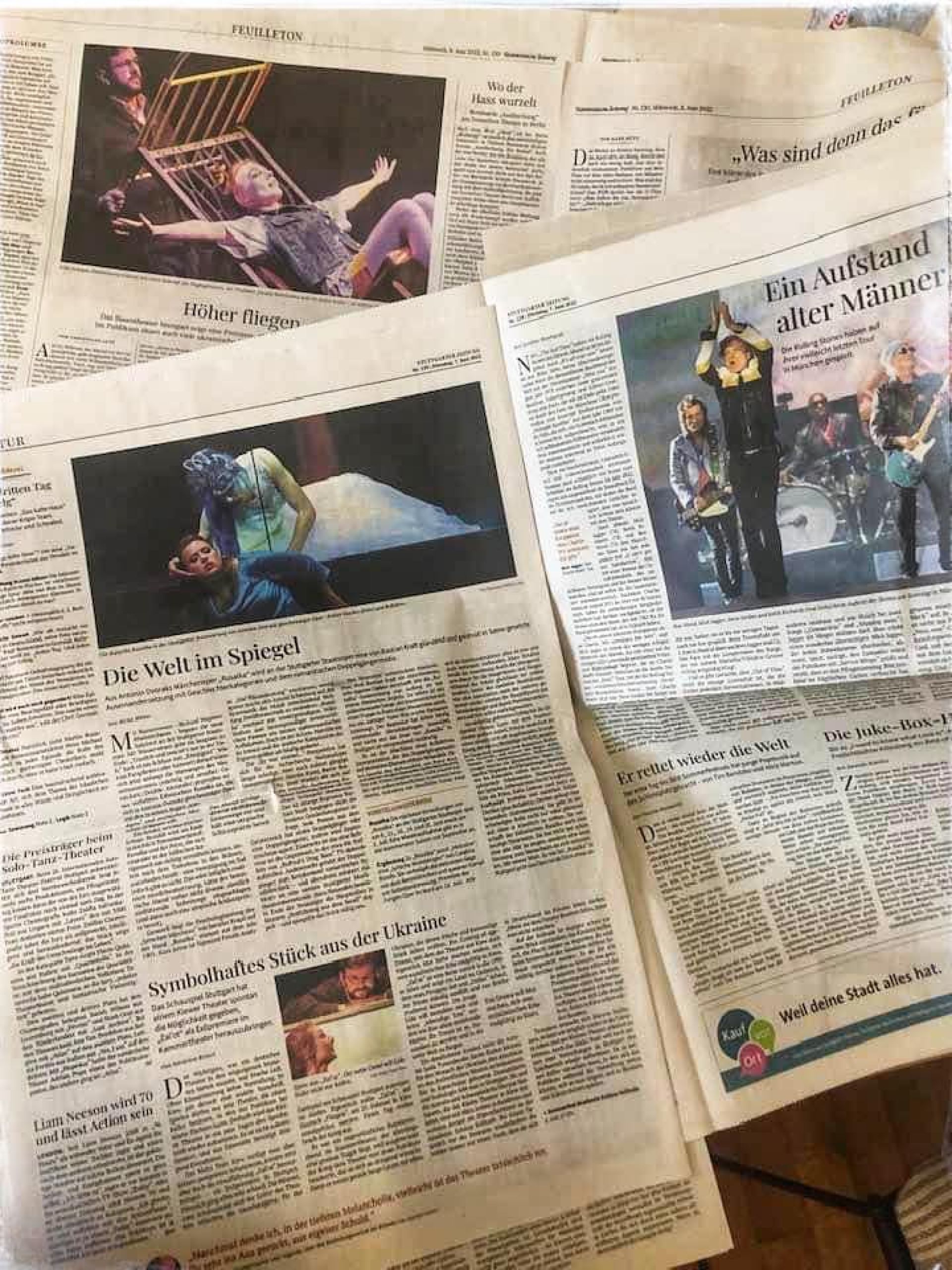 У Штутгарті ж вже у фоє перед виставою у мене розбігалися очі! Бо я бачив, що тут поряд на одну і ту ж саму виставу — причому не з розмитим позиціюванням на різні цільові, а з дуже чітким позиціюванням, яке одразу дає зрозуміти, яка це вистава — йшли і прогресивна, неформальна молодь, і тут же люди старшого, поважного віку. Вони поряд сідають на стільці і однаково щиро сприймають, який би це не був матеріал. Так само на нашій виставі — була дуже різноманітна публіка. Це найбільше враження!
