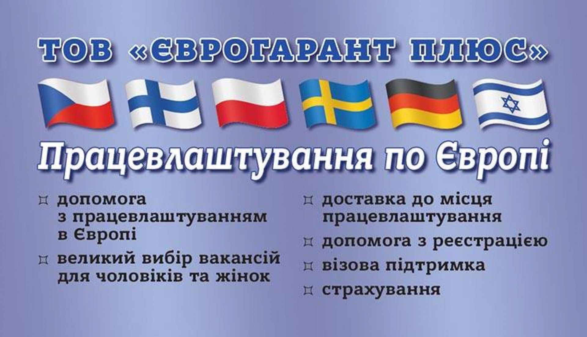 - Роботу в європейських країнах: Латвії, Литві, Польщі, Чехії, Словаччині на інших країнах.