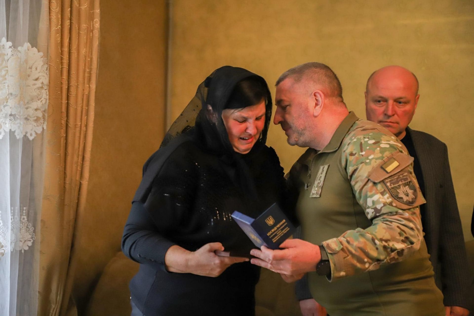 Голова Стрижавської громади Михайло Демченко разом із представниками департаменту поліції особливого призначення «Лють» та Головного управління Національної поліції у Вінницькій області шанобливо передали відзнаку матері Людмилі та батькові Анатолію.