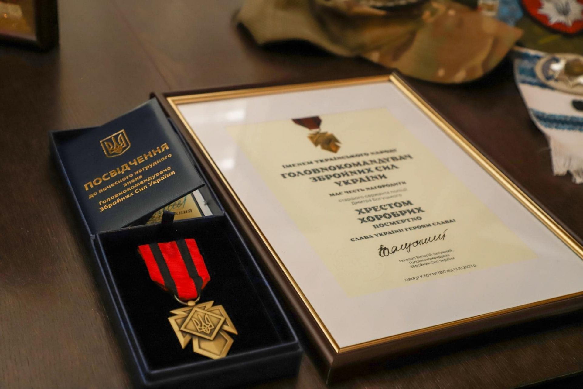 Родині полеглого Героя вручили Почесний нагрудний знак Головнокомандувача Збройних Сил України «Хрест хоробрих».