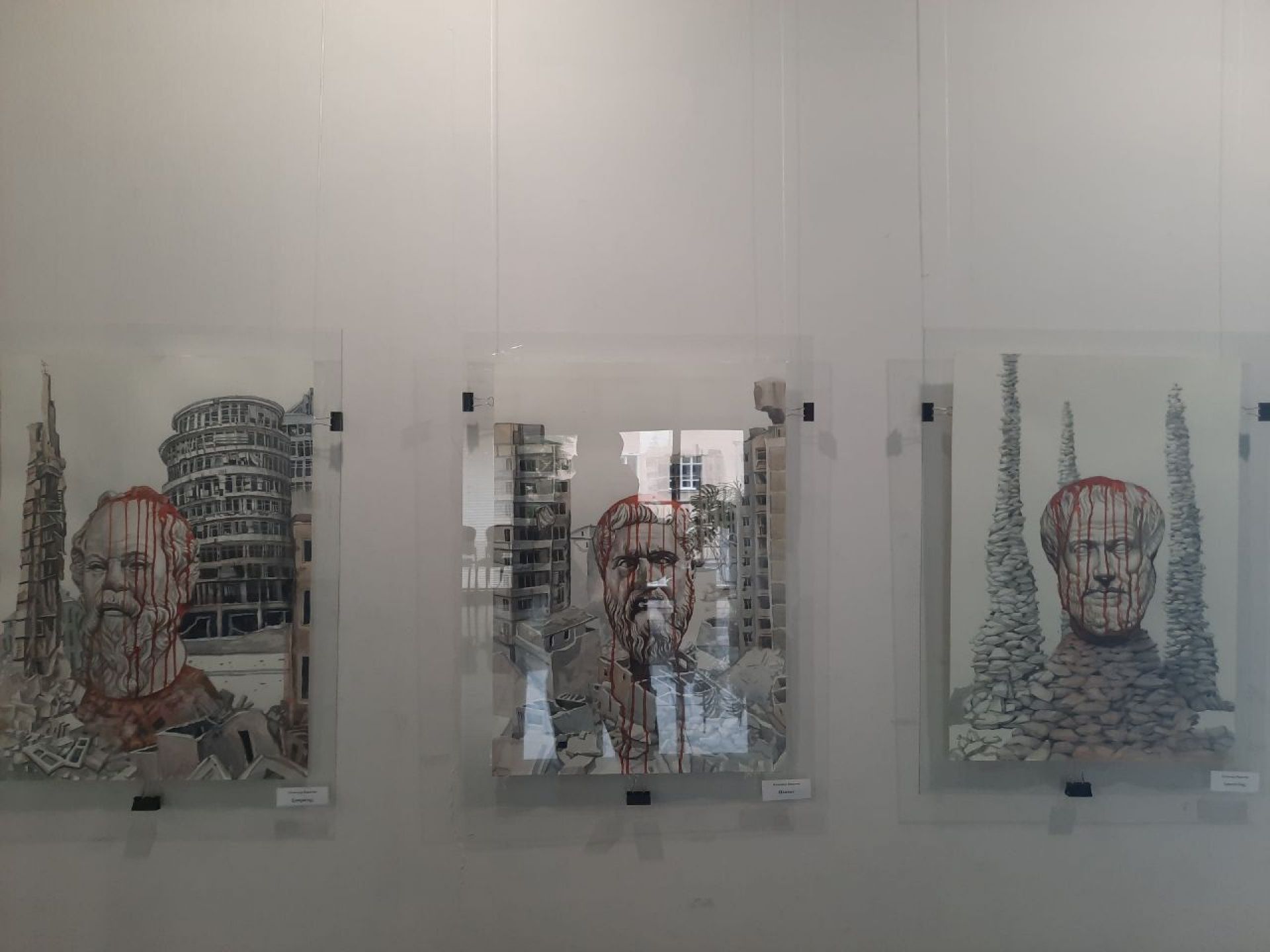 В експозиції художника кілька десятків робіт, більшість з яких він написав впродовж останнього місяця. На них зображені закривавлені погруддя Платона, Жан-Жака Руссо, Іммануїла Канта, Карла Маркса та інших філософів, які жили в різні часи. Кожного з філософів Нікітюк зображує посеред цивільних об'єктів, зруйнованих російськими ракетами та дронами. На картинах можна впізнати багатоповерхівки Дніпра, Маріуполя, Бахмута та інших міст.