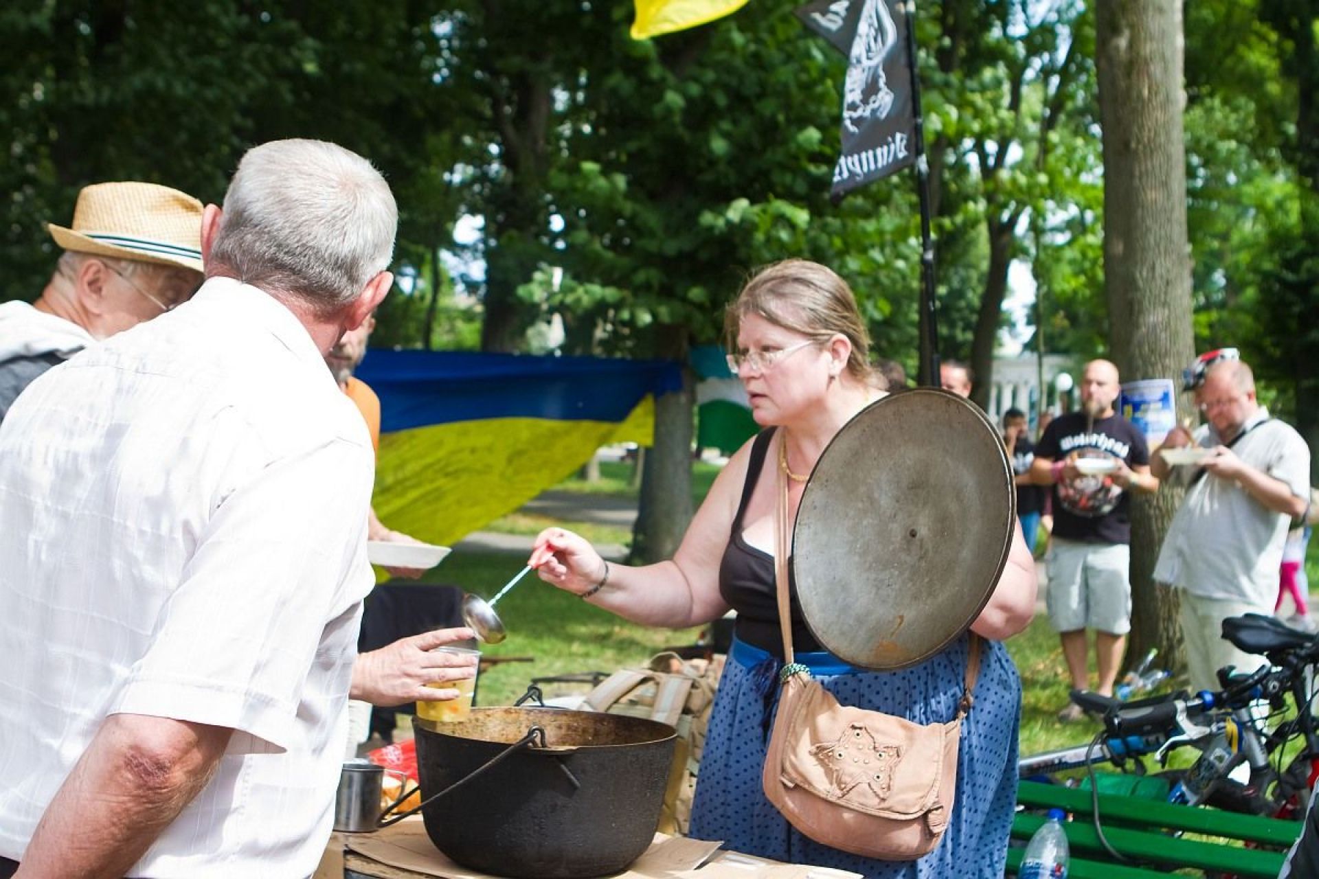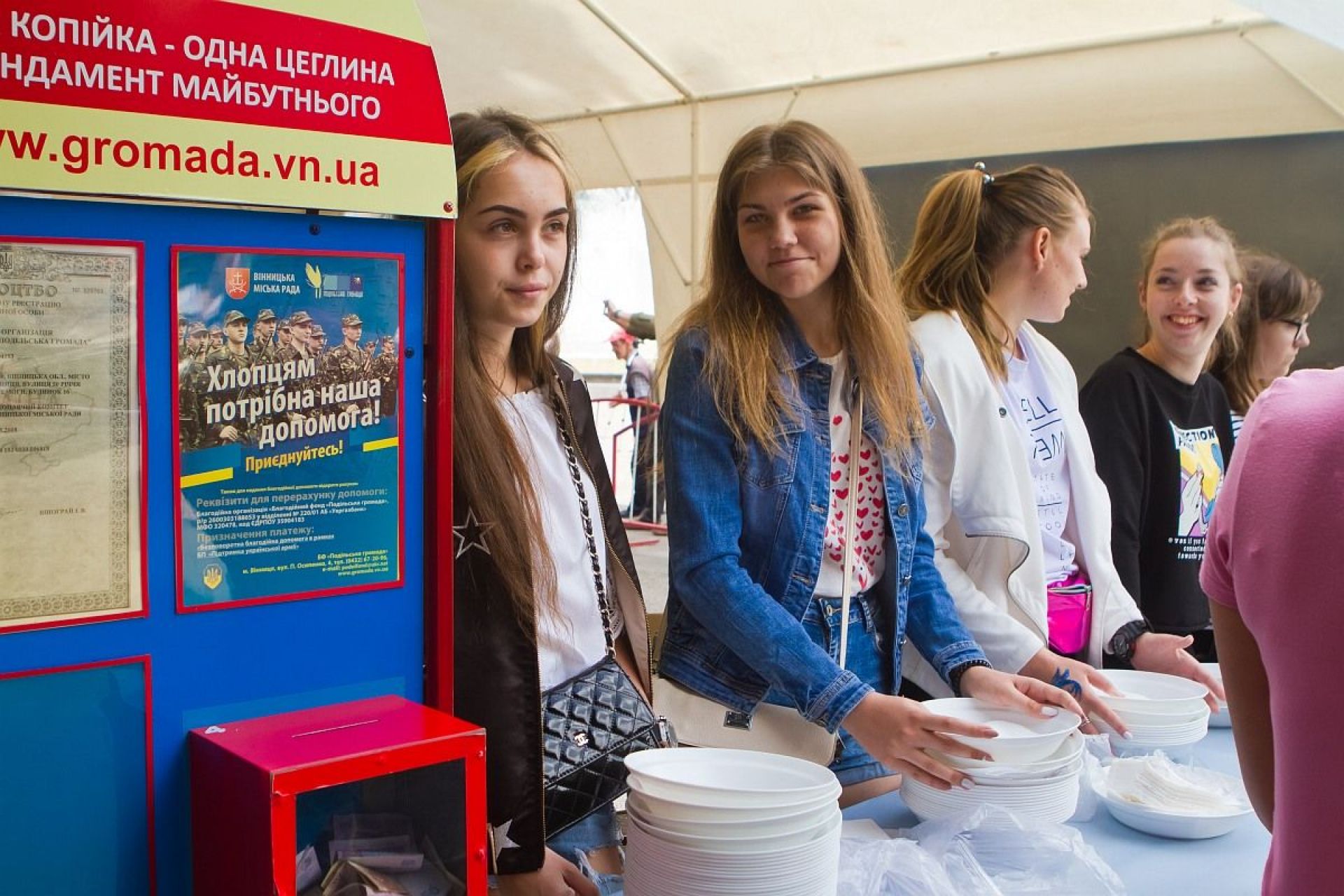 Впродовж Фестивалю вінничани ласували стравами польової кухні та долучались до збору коштів на допомогу військовим. І якщо деякі кулінарні локації пропонували незвичайні національні страви, то справжньої «військової» їжі можна було спробувати у польових кухарів військових частин.
