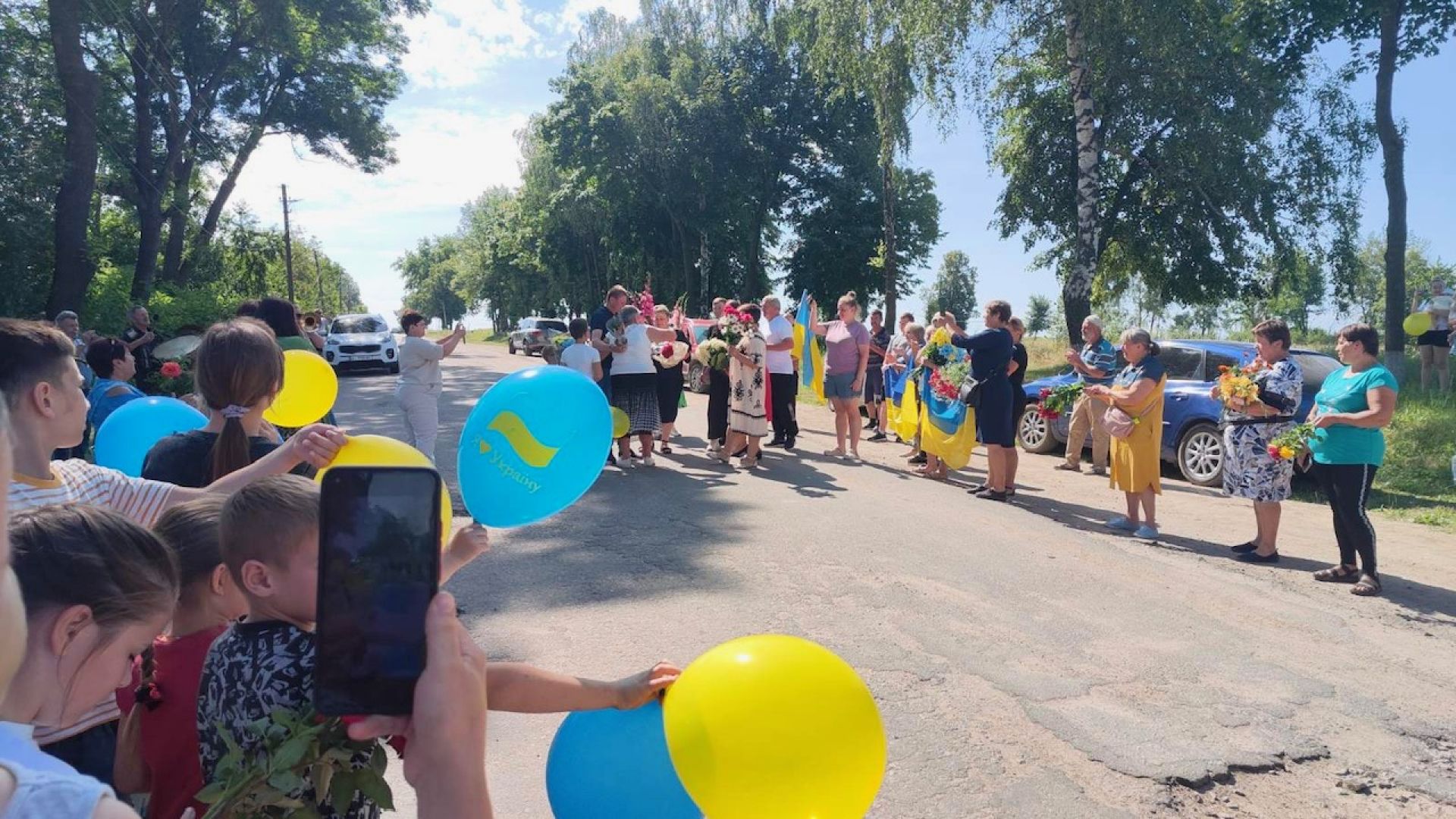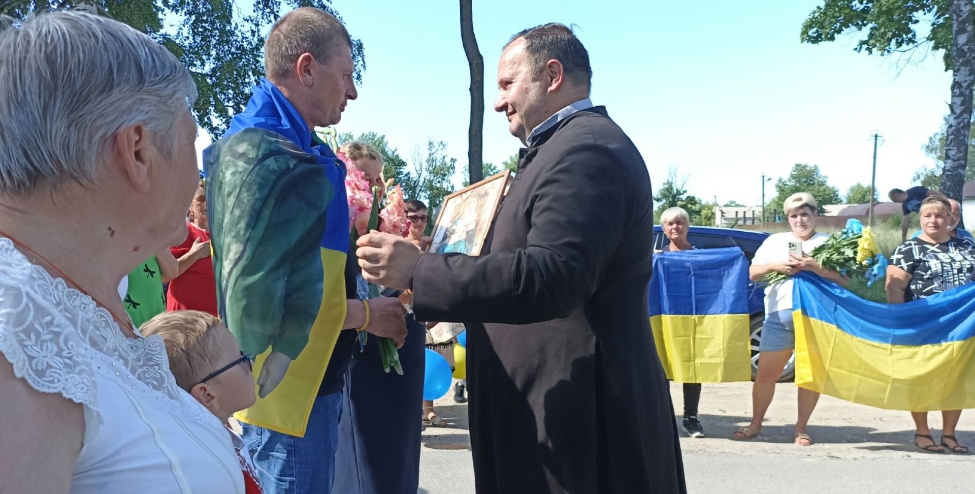 Сьогодні на центральній вулиці села Сергія чекали з квітами, хлібом-сіллю на вишитому рушнику та іконою. Його зустрічали рідні, близькі та односельці.