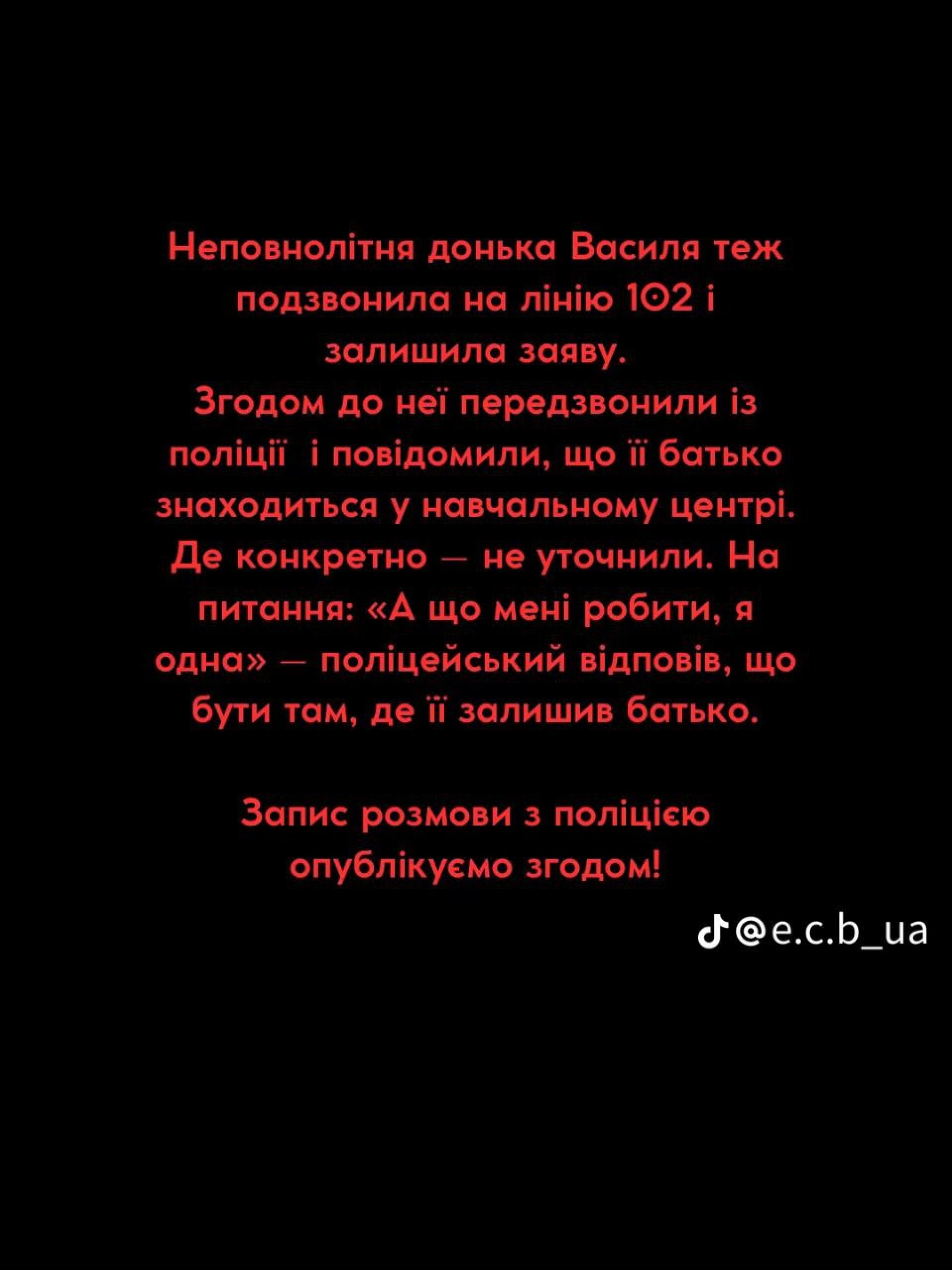 Ситуація набула ще гострішого забарвлення через доньку Василя, яка залишилася у Хмільнику без інших родичів. Дівчинка самостійно зателефонувала на лінію «102», щоб заявити про зникнення батька. За повідомленням сторони блогера, поліція згодом передзвонила дитині й коротко повідомила, що її батько вже перебуває в «навчальному центрі». На запитання дівчинки, що їй робити одній у чужому місті, правоохоронці нібито відповіли: «Бути там, де її залишив батько».