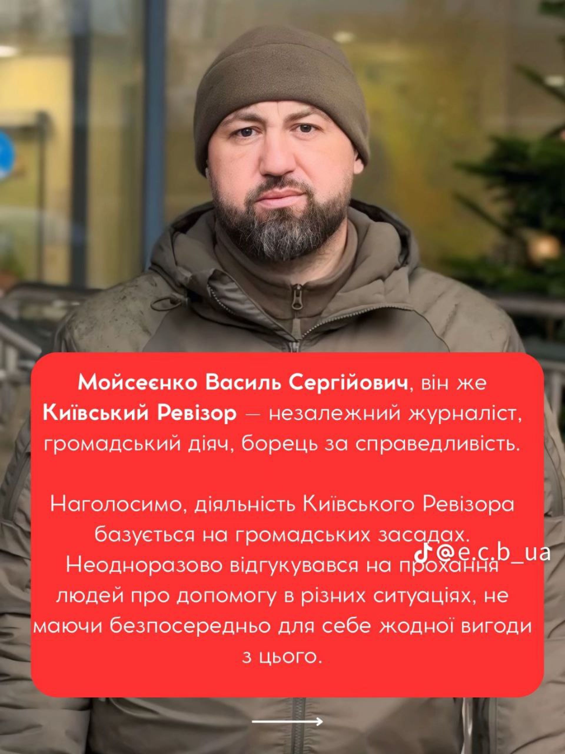 Василь Мойсен позиціонує себе як незалежний журналіст та громадський діяч ГО «Бюро по боротьбі з екологічними злочинами». Його TikTok-канал @kievauditor («Київський ревізор») має майже 250 тисяч підписників та 4,4 мільйона вподобайок. Контент блогера зазвичай присвячений «критичним оглядам» роботи поліції, ТЦК та інших держструктур.