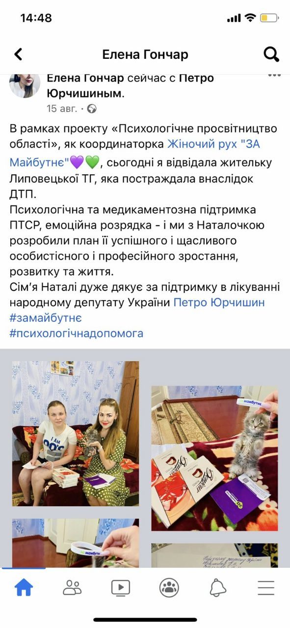 — Якось наші знайомі привозять газету з Хмільника. Там є такий депутат Юрчишин, а в нього помічник — Олена Гончар, саме вона і є цим психологом, який попросив інфекціоніста виписати ліки. Ми це знаємо і спокійно озвучуємо, бо все є в мережі. Ми так розуміємо, що Скороходові звернулися до них по допомогу, помічниця їх провідала і цей рецепт вийшов з-під їхньої руки саме таким чином, — додає жінка.