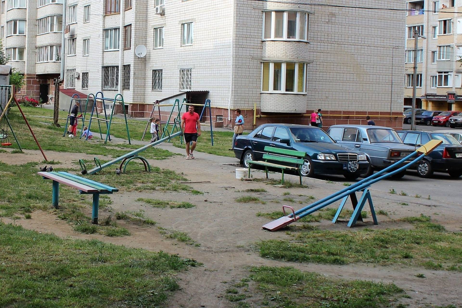 Прогулялися й по кількох подвір’ях мікрорайону. У сусідній Вишеньці дитячі майданчики були в кожному подвір’ї. Більше половини з них — різнокольорові, з гірками, гойдалками та невеликим містечком.