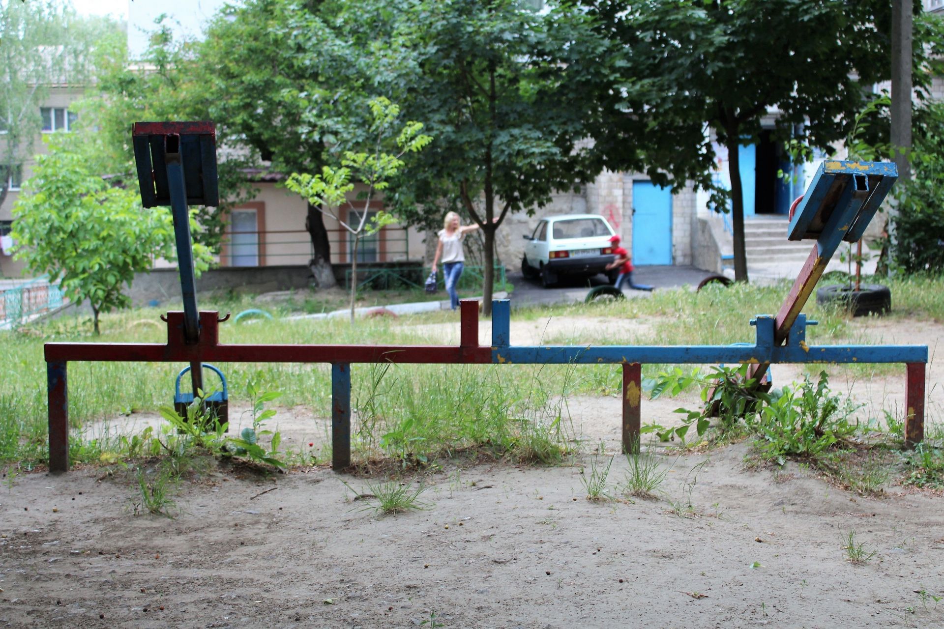 «Рошенівські», як кажуть у народі. А в Слов’янці ситуація абсолютна протилежна. Хоча подвір’я просторі, але дитячі майданчики — іржаві та облущені. Або їх взагалі немає.