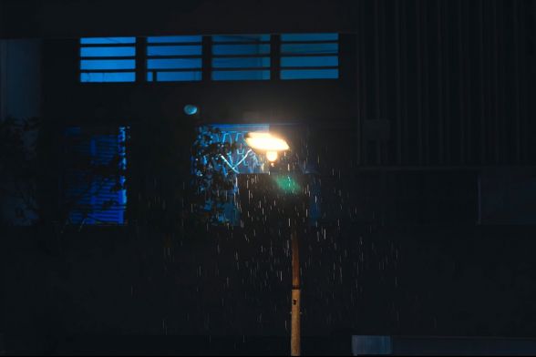 Гра зі світлом проектора, краплі дощу, дим та сяйво променів — візуально все вийшло дуже цікаво й атмосферно.