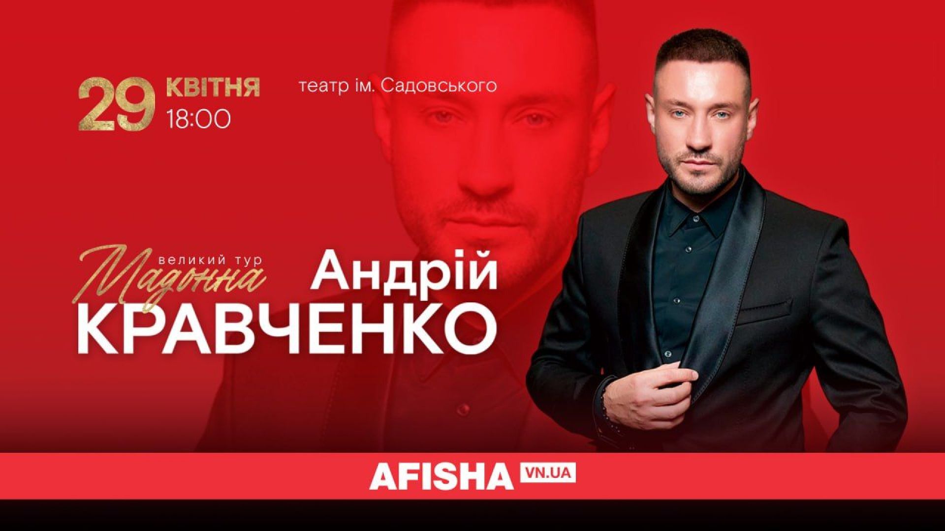 У березні Андрій Кравченко вирушає у великий тур Україною, у межах якого приїде й у Вінницю. Вінницький концерт співака пройде 29 квітня о 18.00 у театрі імені Садовського.
