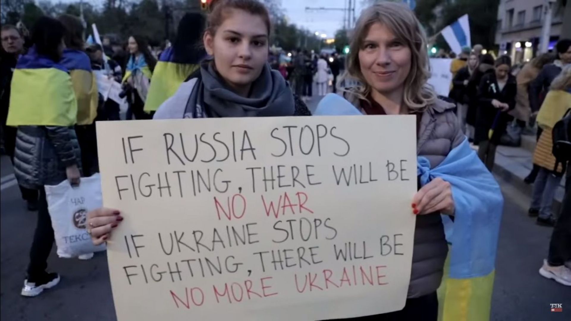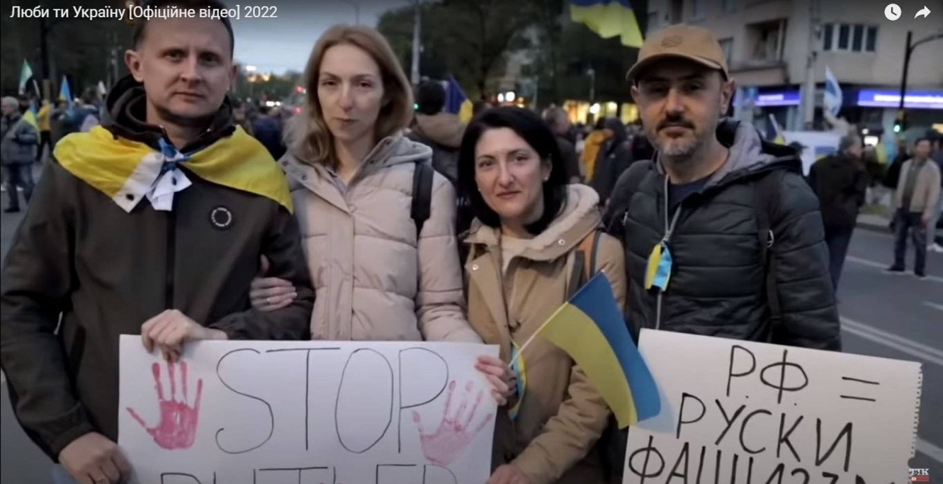 Друга частина відео — кадри героїчного опору українського народу та ЗСУ, що облетіли весь світ.