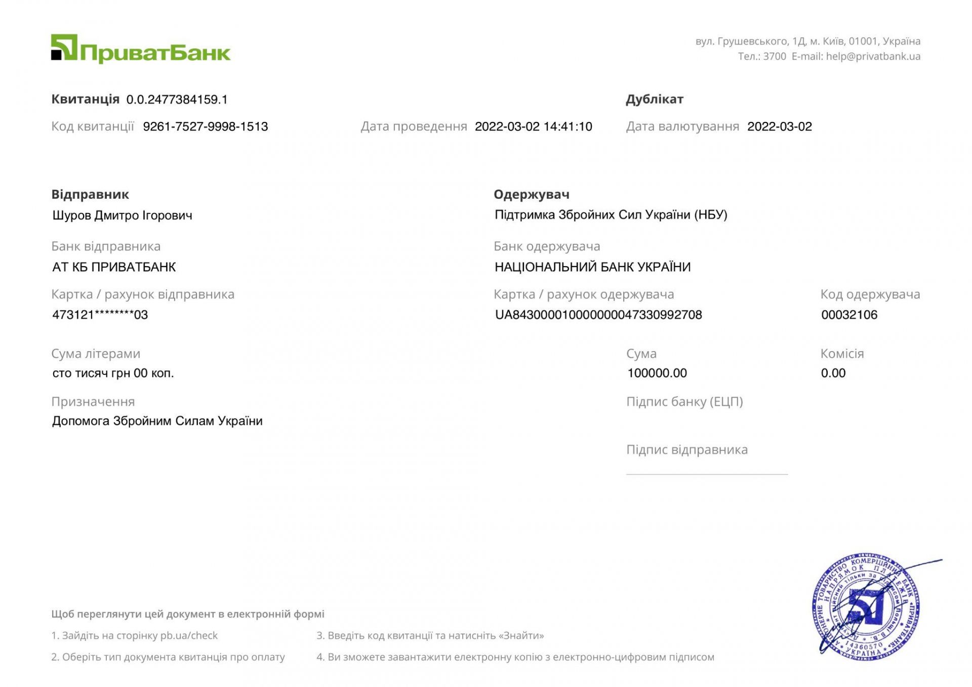 - Вже у перші дні війни наш зірковий земляк Pianoбой перерахував власні 100 тисяч гривень на підтримку Збройних сил України.