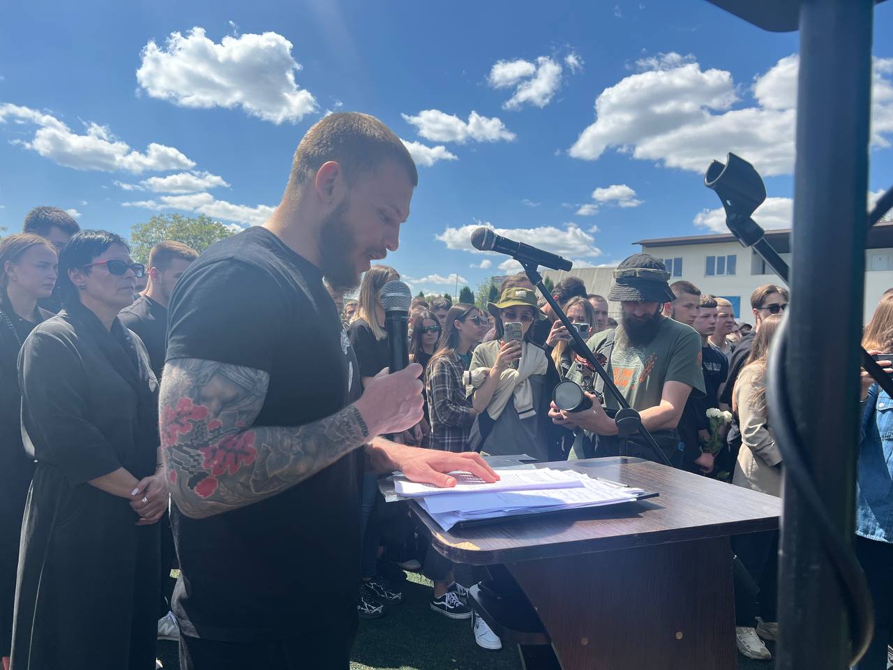 І також повторювали відому цитату, яку висловив Назарій «Грінка» навесні 2022 року, на розвалинах заводу Азовсталь в Маріуполі: «Любіть маму, їжте кашу, любіть Україну!».