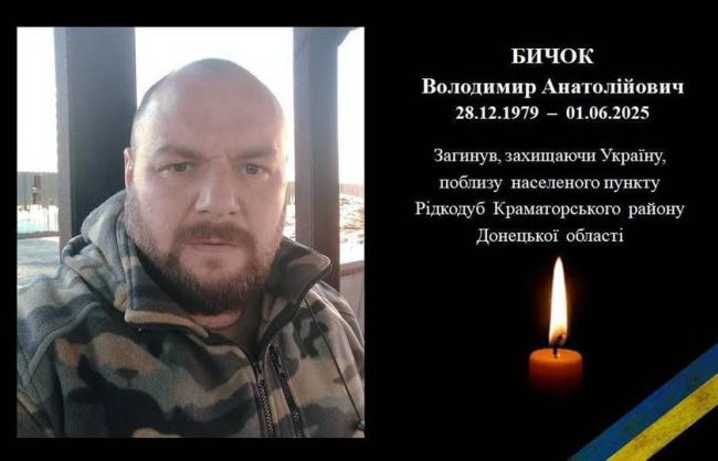 - Командир мінометного взводу 66-ї окремої механізованої бригади Володимир Бичок загинув 1 червня під час бойового завдання в районі Рідкодуба на Донеччині. Воїну було 45 років. За мужність і самопожертву його глибоко шанують родина, побратими та громада.