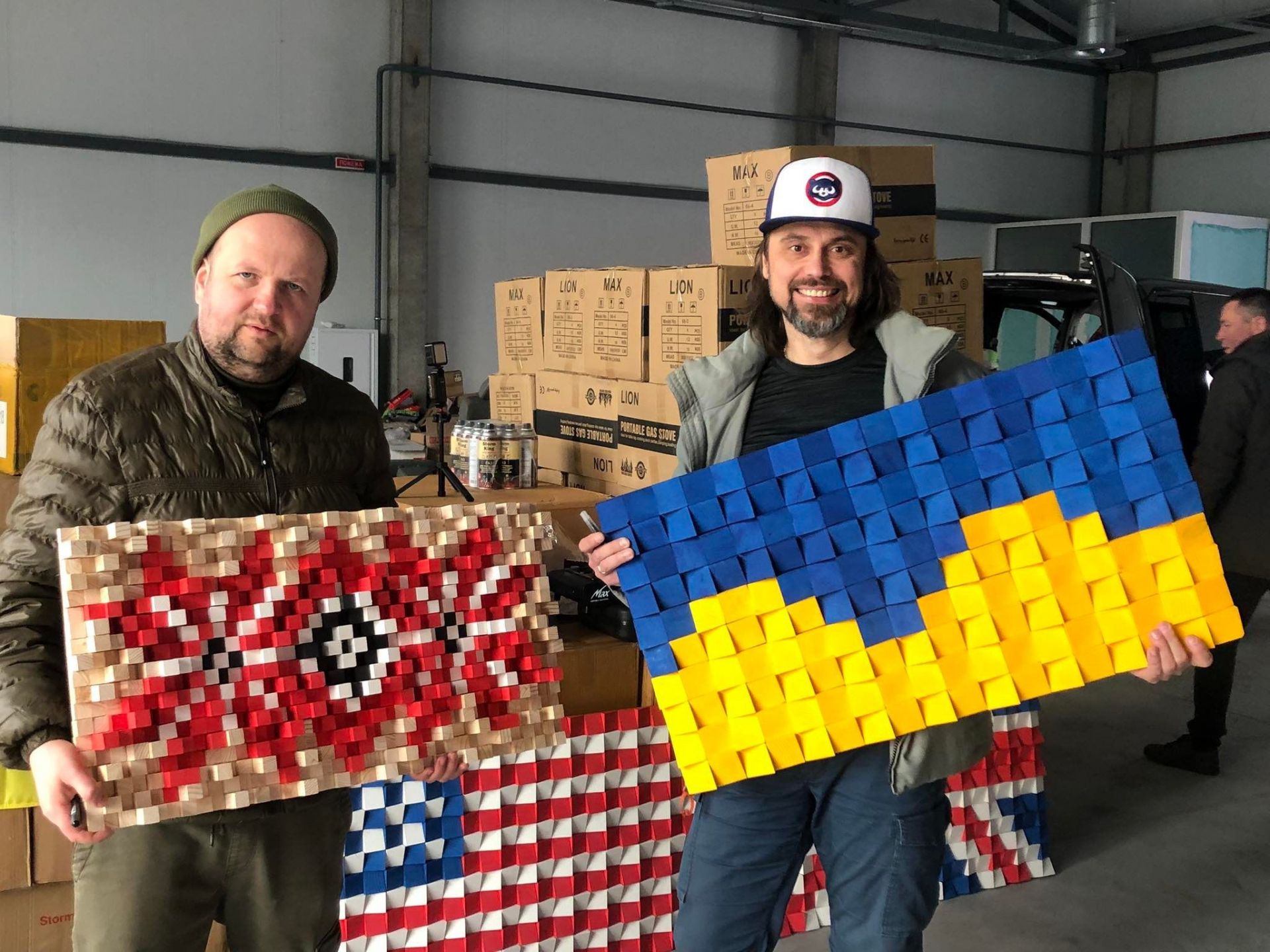 — Після 24 лютого у кожного з нас почалося своє нове життя. Моєї родини, на жаль, біля мене немає поруч вже майже рік, тож, як творча людина, я захопився таким хобі. На створення однієї такої картини йде від кількох тижнів до місяця, адже до кожного кубика повертаєшся по 10 разів, вирізаючи, відшліфовуючи, фарбуючи і збираючи все, — розповідає Володимир Лапшов. — Мені дуже приємно, що ці картини тепер будуть частинкою Поділля у Херсонщині і Миколаївщині, за які ми всі щиро вболіваємо. А інші мої великі картини — у кольорах прапорів США й Великобританії — плануємо передати нашим друзям у посольства.