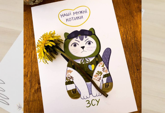- «ЗСУ — наші мужні котики», — листівки з таким текстом та символічним малюнком можна підписати для військових у трьох точках нашого міста.
