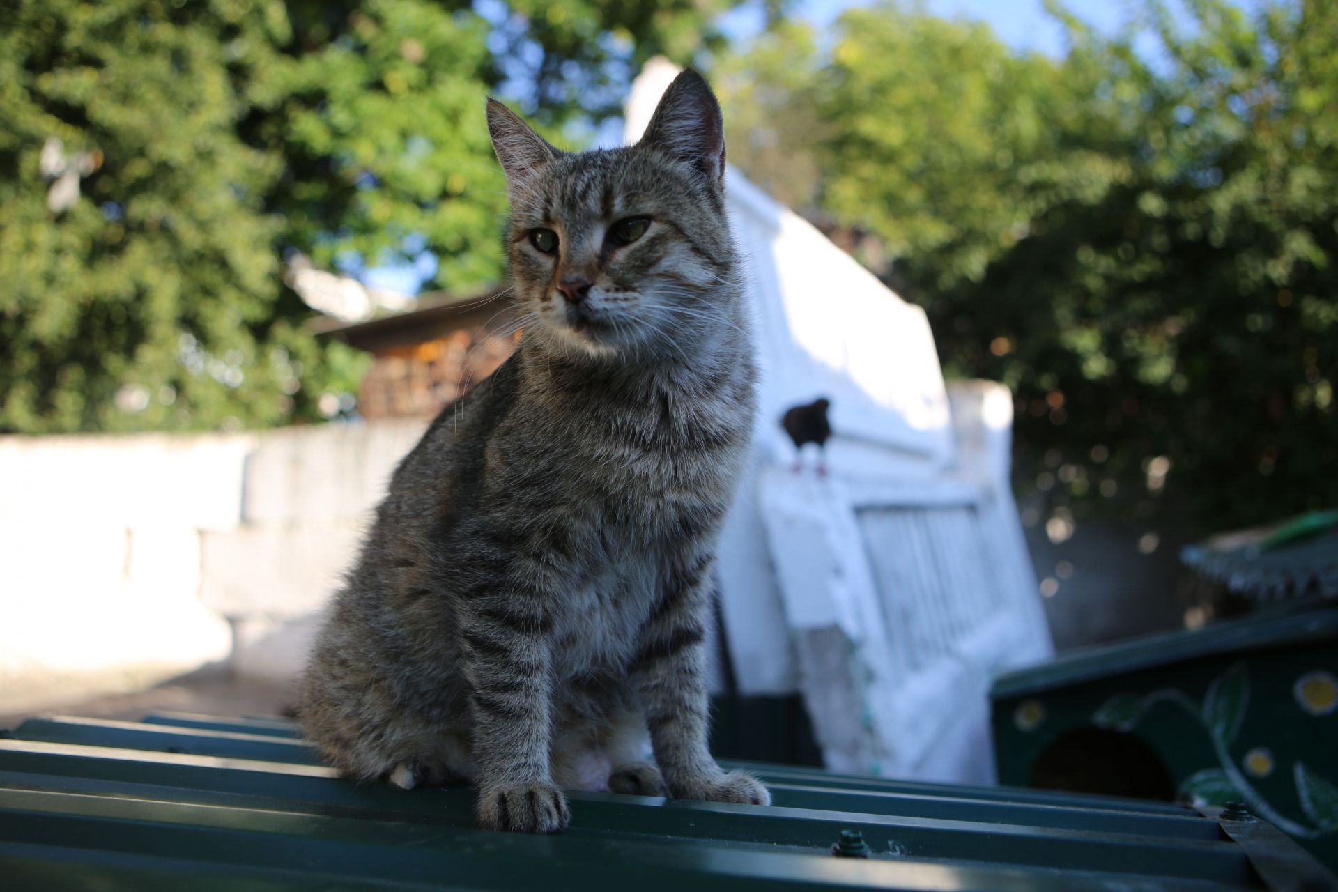 — Постійно воюю з цими птеродактилями. Бачите, зараз їдять коти. Вони завжди перші. Лише потім приходять собаки, — говорить Олександра Романенко. — Я прошу не вказувати адресу, адже тут можуть з’явитися живодери, або почнуть підкидати сюди цуценят і кошенят. Ці тварини їх не приймать.