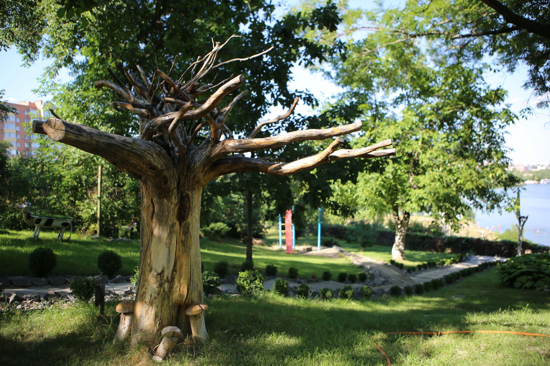Позбувшись сміття, жителі взялися за старі дерева. Одні коронували, інші — спилювали. Отримані стовбури перетворювали на декоративні вироби, якими починали прикрашати двір
