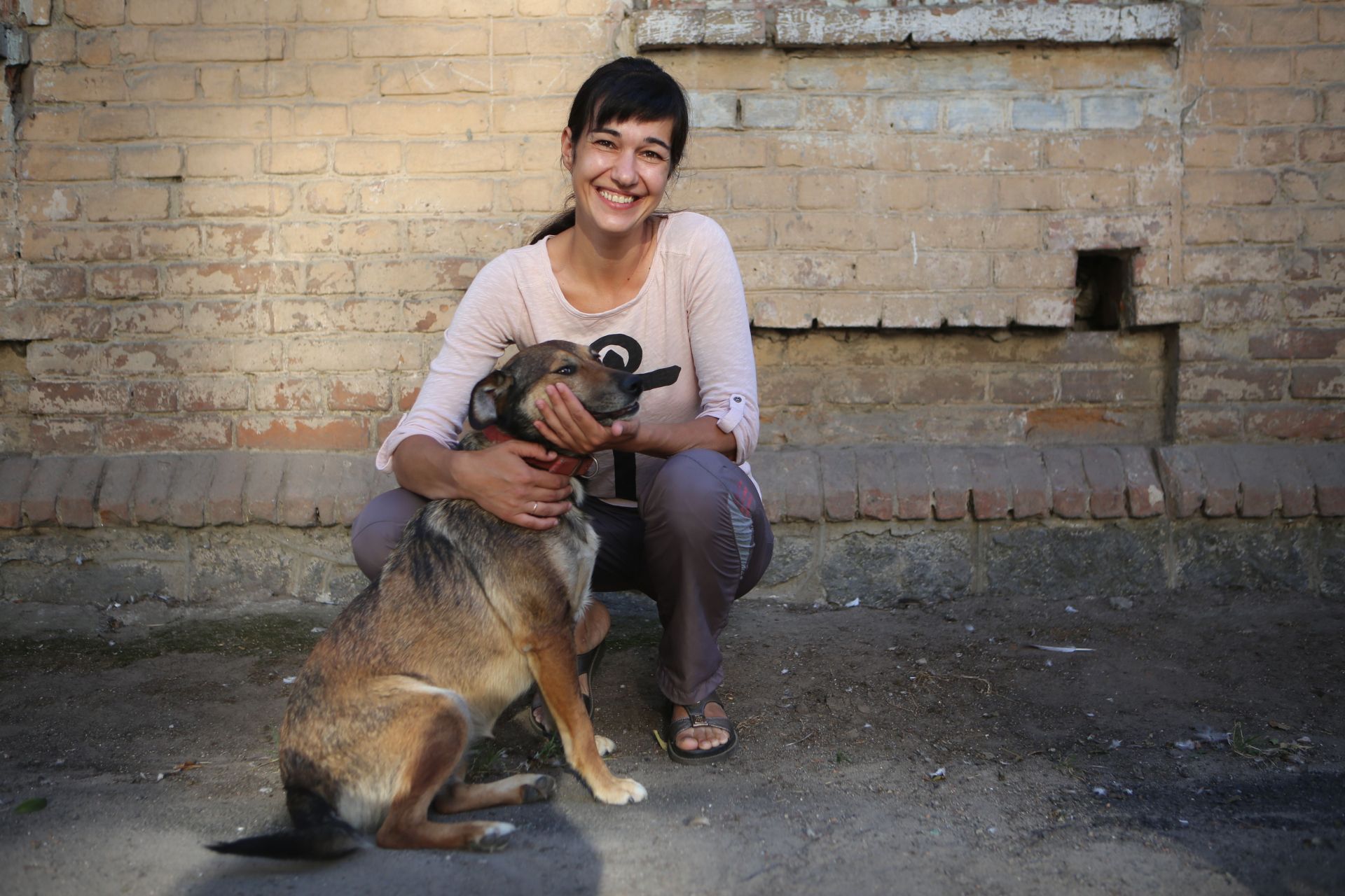 — В оновленому вигляді будка існує лише місяць, але нас вже встигли обікрасти. Вкрали корм, миючий засіб, совок, ковдри та миски. Але то нічого, головне, що з тваринами все добре, — розповідає Олександра. — Вони добре між собою ладнають. Собаки, то взагалі справжня сім’я, нікуди одна без одної, так Боля? — звертається волонтерка до собаки, яка щойно до нас підійшла. Боля розлягається на асфальті і починає позувати моїй камері. — Це найдобріша собака в цілому світі. Вона може прийти до дітей в пісочницю, лягти поруч, діти будуть пасочки на ній робити, а їй хоч би що. Аби увагу звертали та гладили.