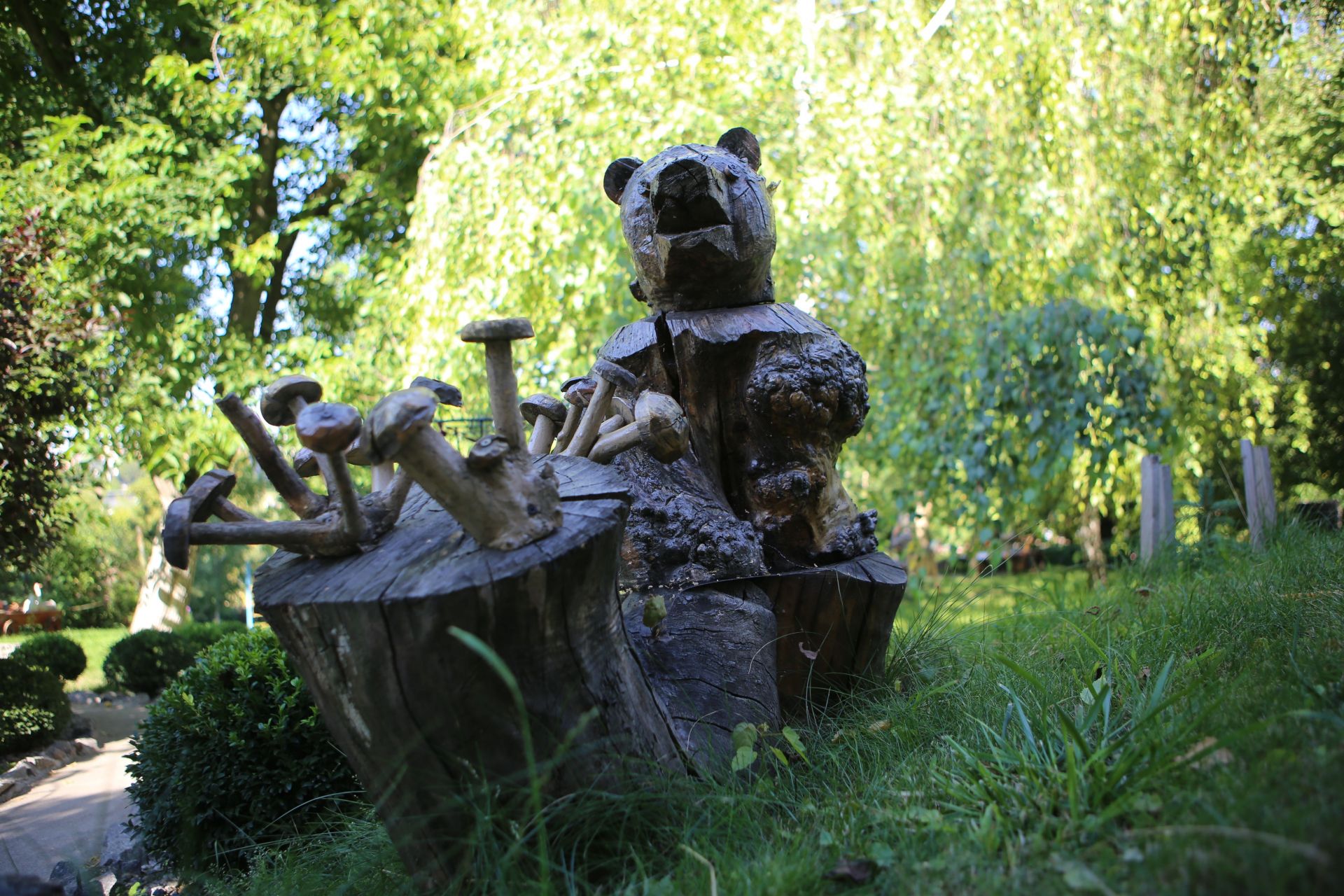 — Дружина у мене генератор ідей, а я більше по їх втіленню. Наприклад, коли щось зварити потрібно чи вирізати, — підхоплює Олександр. — Може бачили під аличею з березових колод дві людини зроблені? Це я їх робив. Назвав Опанасом та Одаркою.
