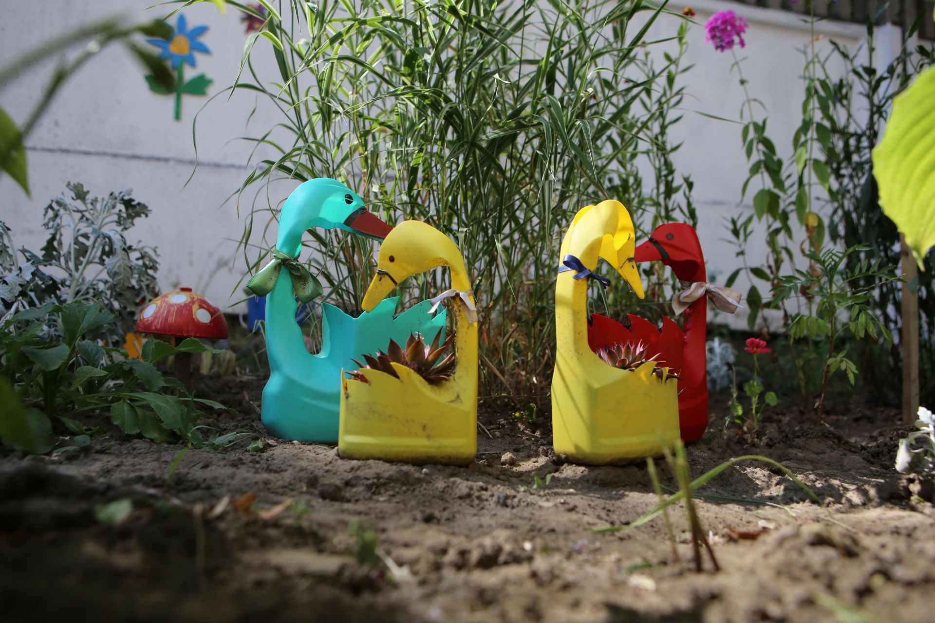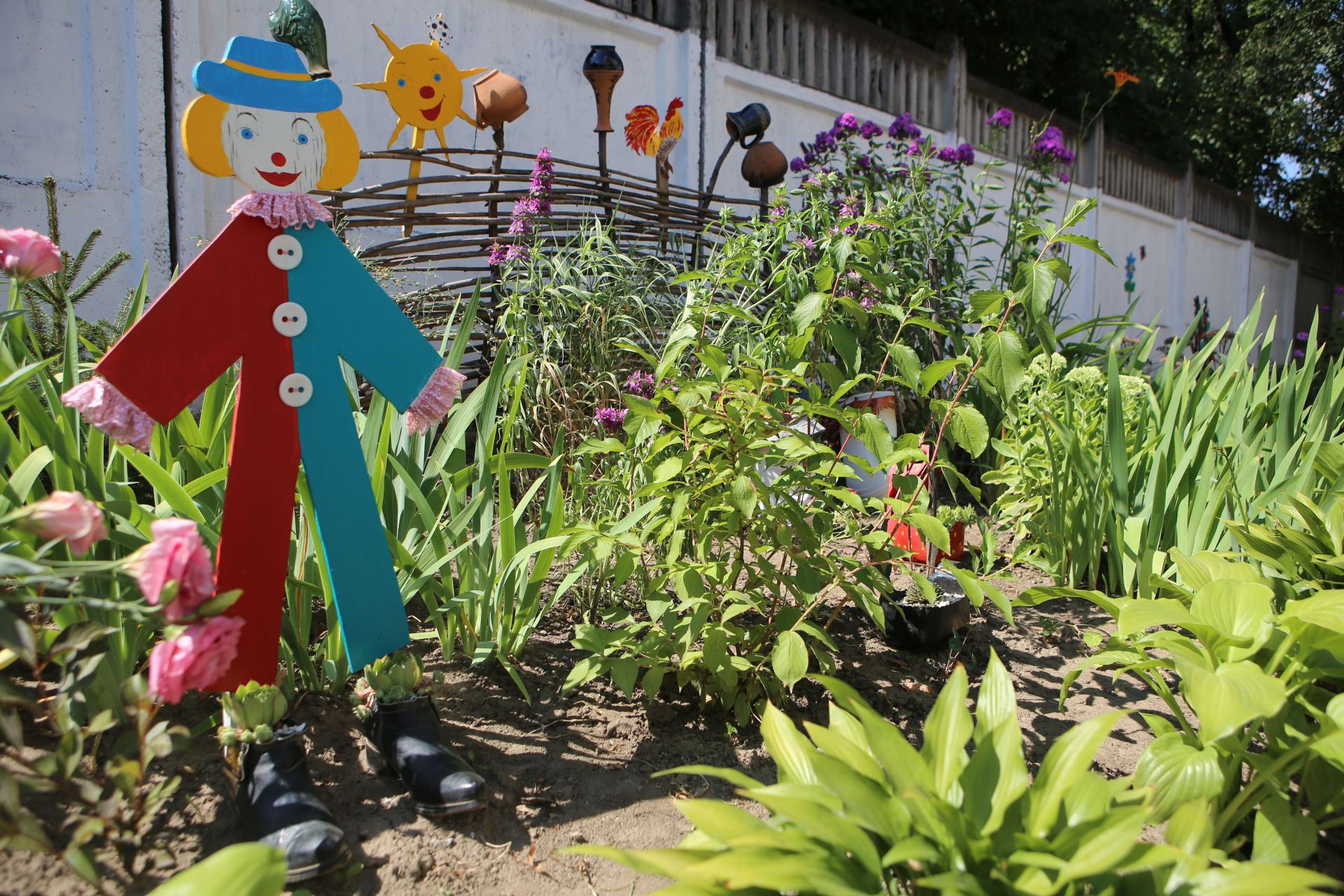 «Почалося це років з десять тому», — говорить Тетяна про своє з чоловіком хобі облаштовувати клумби біля багатоповерхівки, що в ній вони живуть. Колись ці клумби були захаращеними, а тепер на них цвітуть понад сто різновидів рослин, які Тетяна власноруч висадила. Її чоловік Олександр часу також не гаяв і займався створенням різноманітних фігурок з колод, фанери і пластику. Зараз у дворі можна побачити бджіл з пляшок від йогуртів, качок з каністр, клоуна вирізаного з фанери, коника з колод та багато всього іншого.