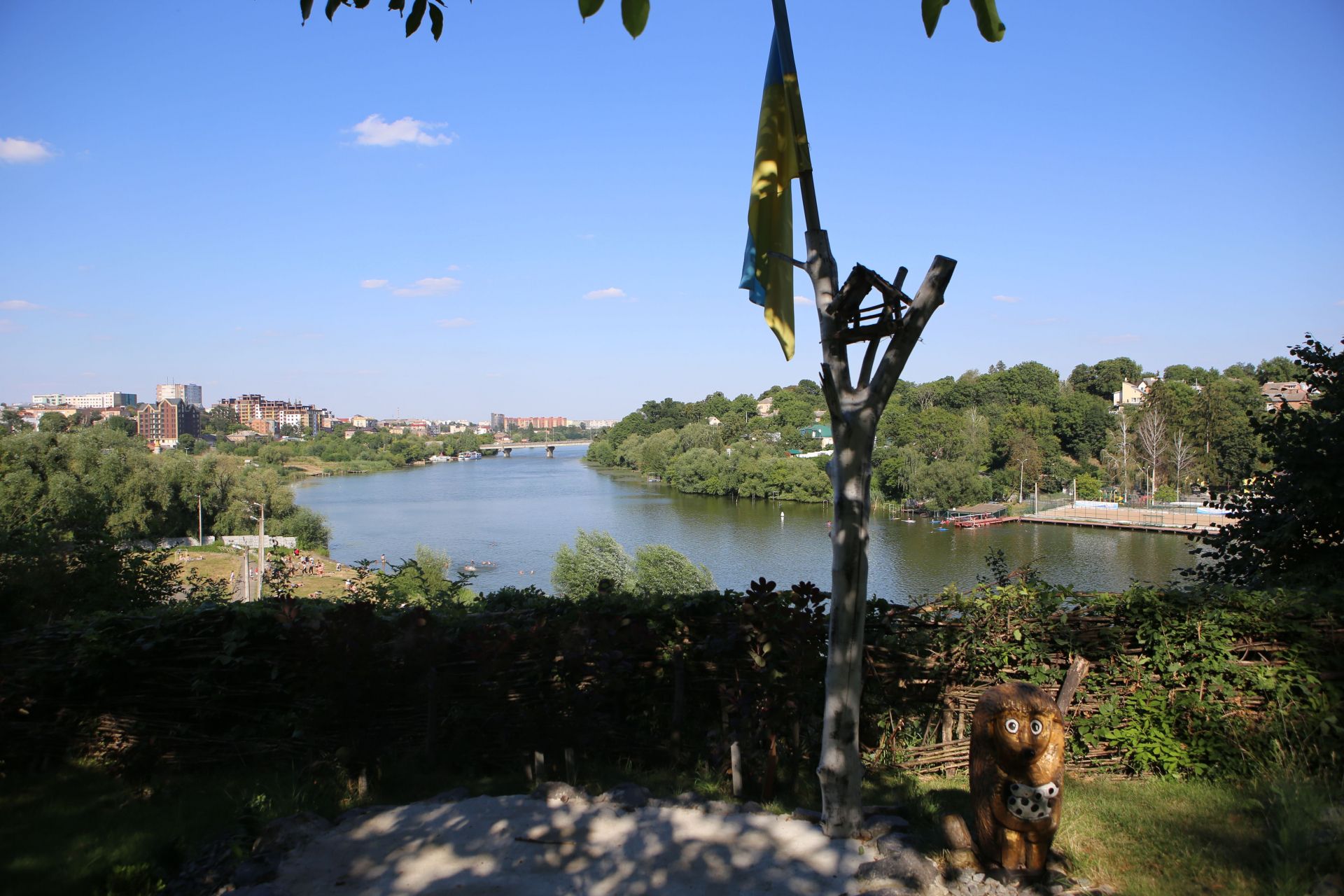 «Цим місцем я займаюся вже десятий рік. Називається воно Сквером над скелею», — розповідає його ідейна натхненниця Любов Кошелєва. Жінку ми зустрічаємо у дворі будинку, що в ньому і облаштований сквер. У буремних дев’яностих тут були чагарники, висока трава і гори сміття. Гори — це не перебільшення. Любов говорить, що сміття вивозили машинами і тракторами два літа поспіль.