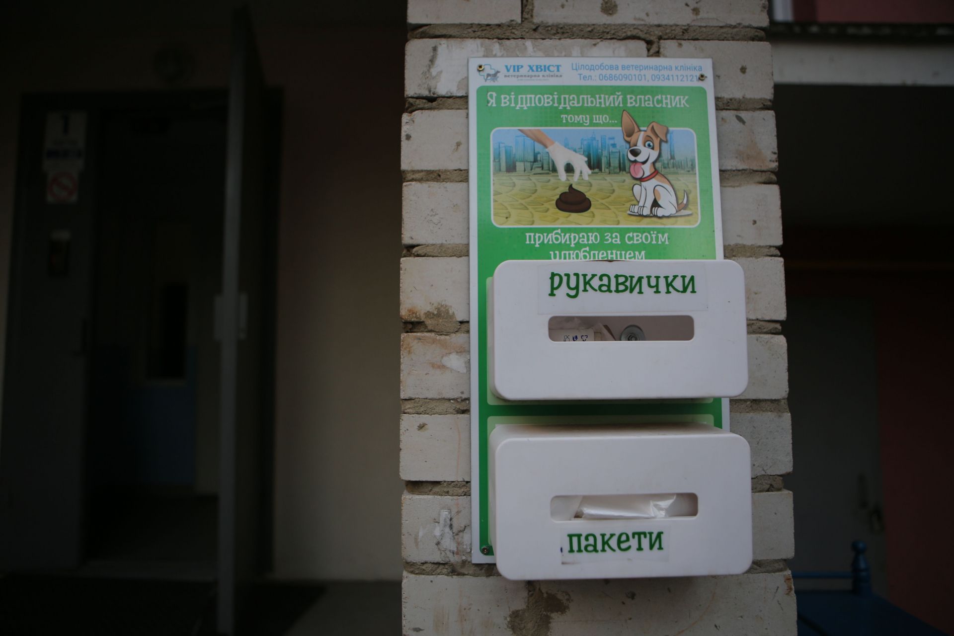 — Якось я дивився передачу і там розповідали про собачі вбиральні. Я й подумав, що нам також не завадило б такі мати, — говорить Максим Кравченко. — Виявилося, що заводський такий виріб коштує дорого, тому пішов до «Епіцентру» і почав шукати щось схоже. Врешті придбав кілька серветниць, закріпив їх до стінок і маємо тепер ми собачі вбиральні вартістю 19 гривень кожна. Не скажу, що ними прямо-таки всі користуються, але на позитивний імідж будинку це однозначно впливає.