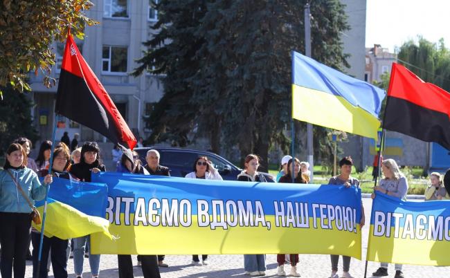 На центральній площі містяни зустрічали Героя з квітами, смаколиками, обіймами та словами вдячності.