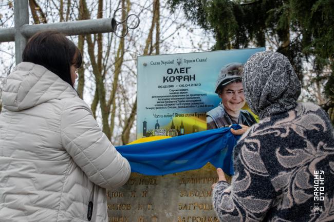 «Ми тут, щоб відкрити меморіальну дошку на честь гвардійця військової частини 3008 Олега Кофана, який загинув при виконанні бойових завдань. Від командування висловлюємо щирі співчуття. Вічна пам'ять воїну та честь», — звернувся до присутніх частини майор Дмитро Надводний.