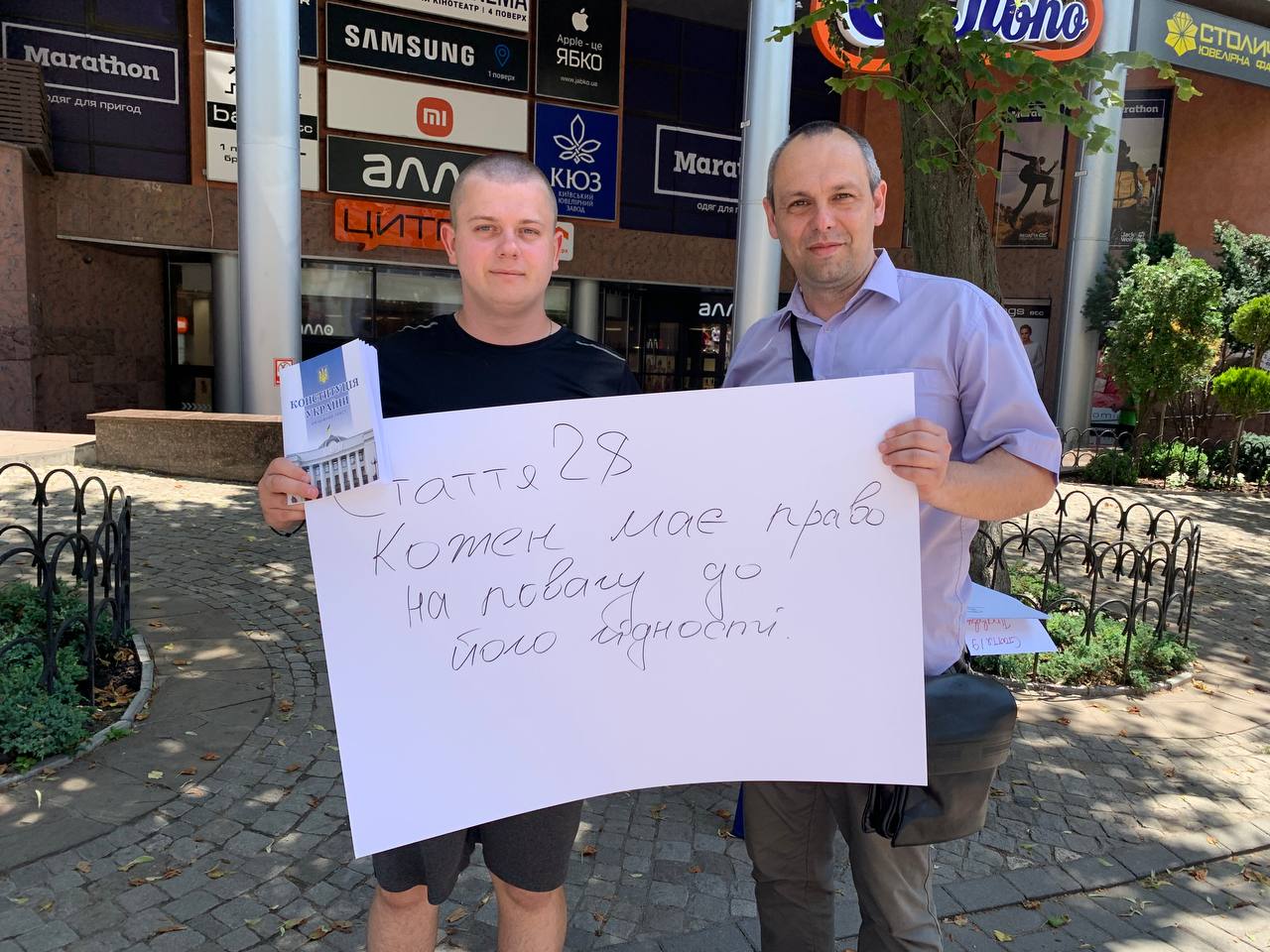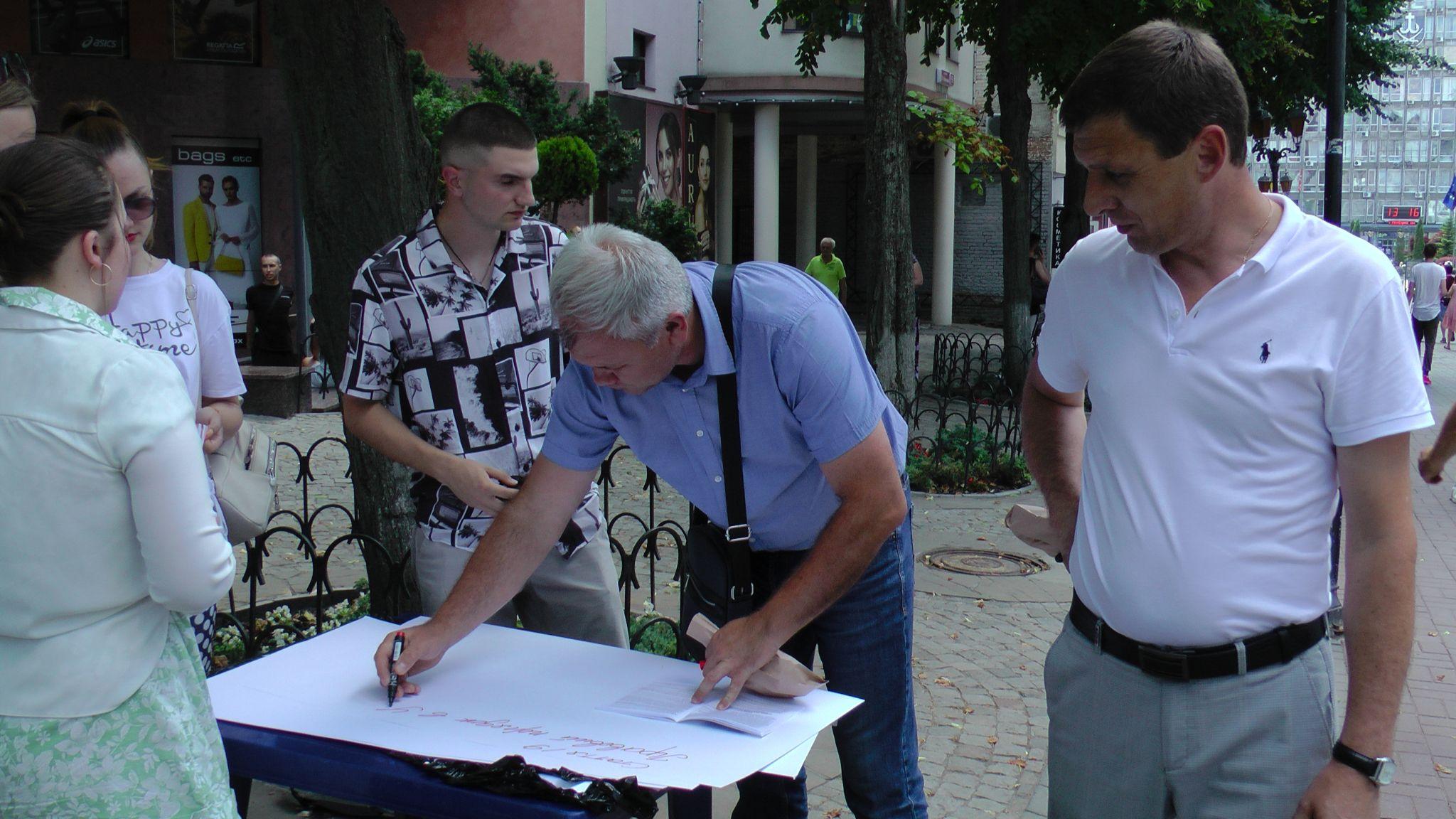 - З року в рік вони проводять такі собі соціальні експерименти на предмет знання конституції. Цього разу, на відміну від попередніх, перехожі у центрі міста не просто згадували статті, а й дослівно виписували їх на ватмані.
