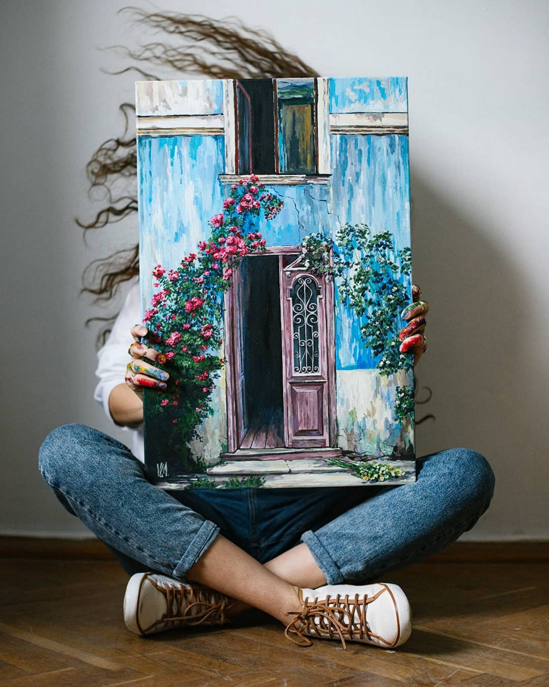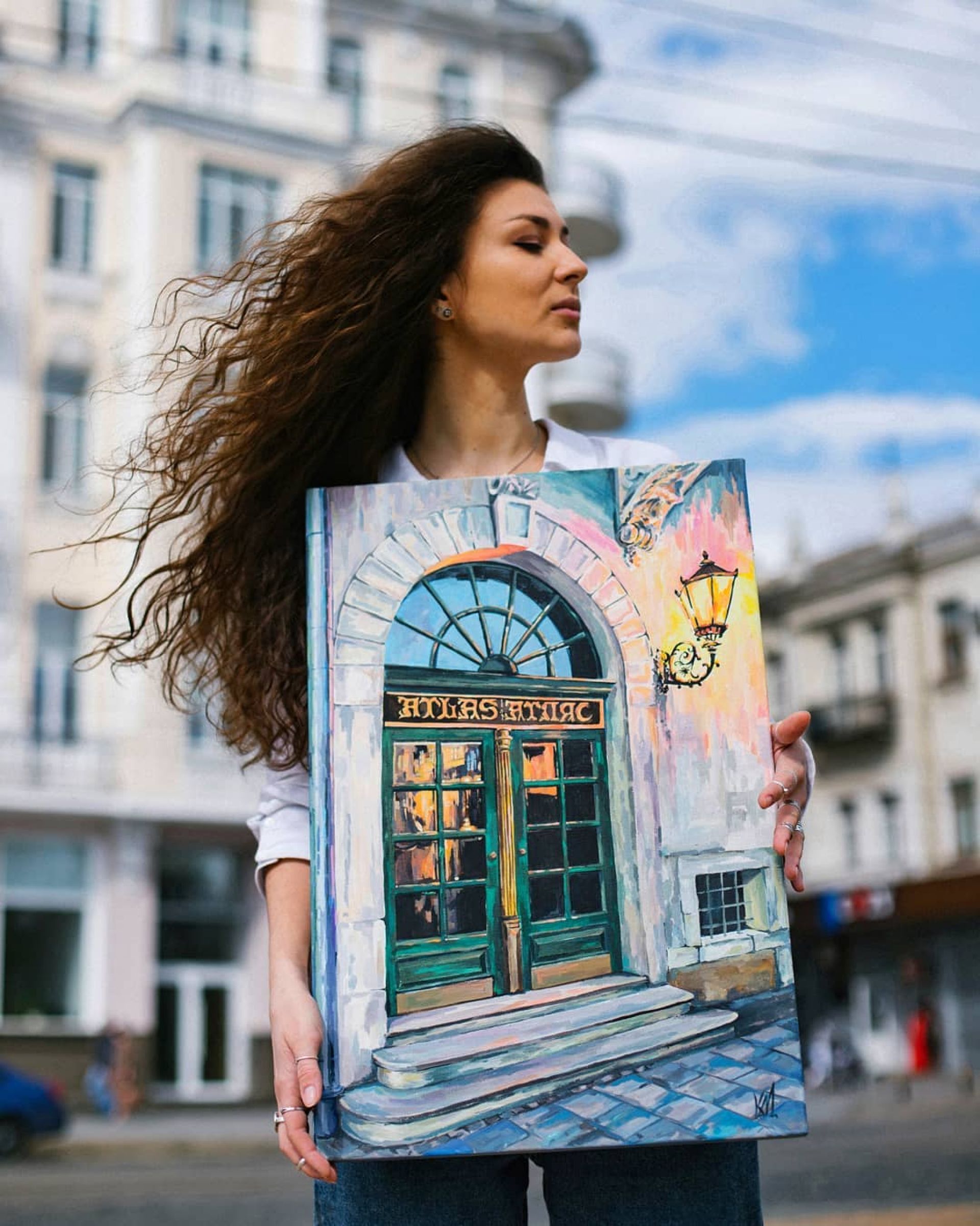 З часом Марина помітила, що в її замальовках переважають архітектурні деталі, а на світлинах, які з кожної подорожі вона привозила у великій кількості, здебільшого зображені двері. Тоді їй і спало на думку, що було би непогано поєднати живопис зі своєю любов’ю до деталей та старовинною архітектурою.
