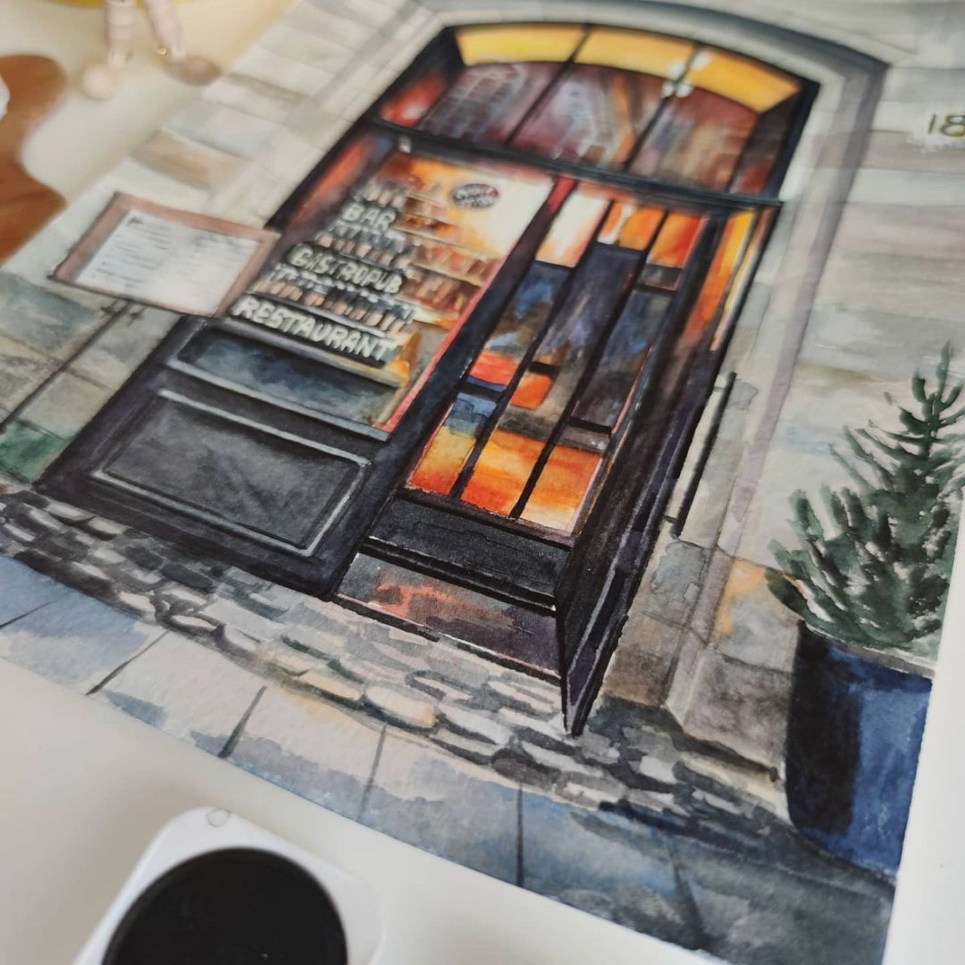 — Списувати з натури майже немає можливості. Зазвичай, це прохідні вулиці, де незручно сидіти з мольбертом. Як на мене, добре все пофотографувавши, можна в комфортних умовах творити у майстерні, — продовжує Марина. — Мої роботи завжди автентичні, у них немає авторської вигадки. Можливо, якусь квітку чи гілку для більшої естетики можу зобразити трішки вище або нижче, але не більше, сама архітектура у мене завжди оригінальна.