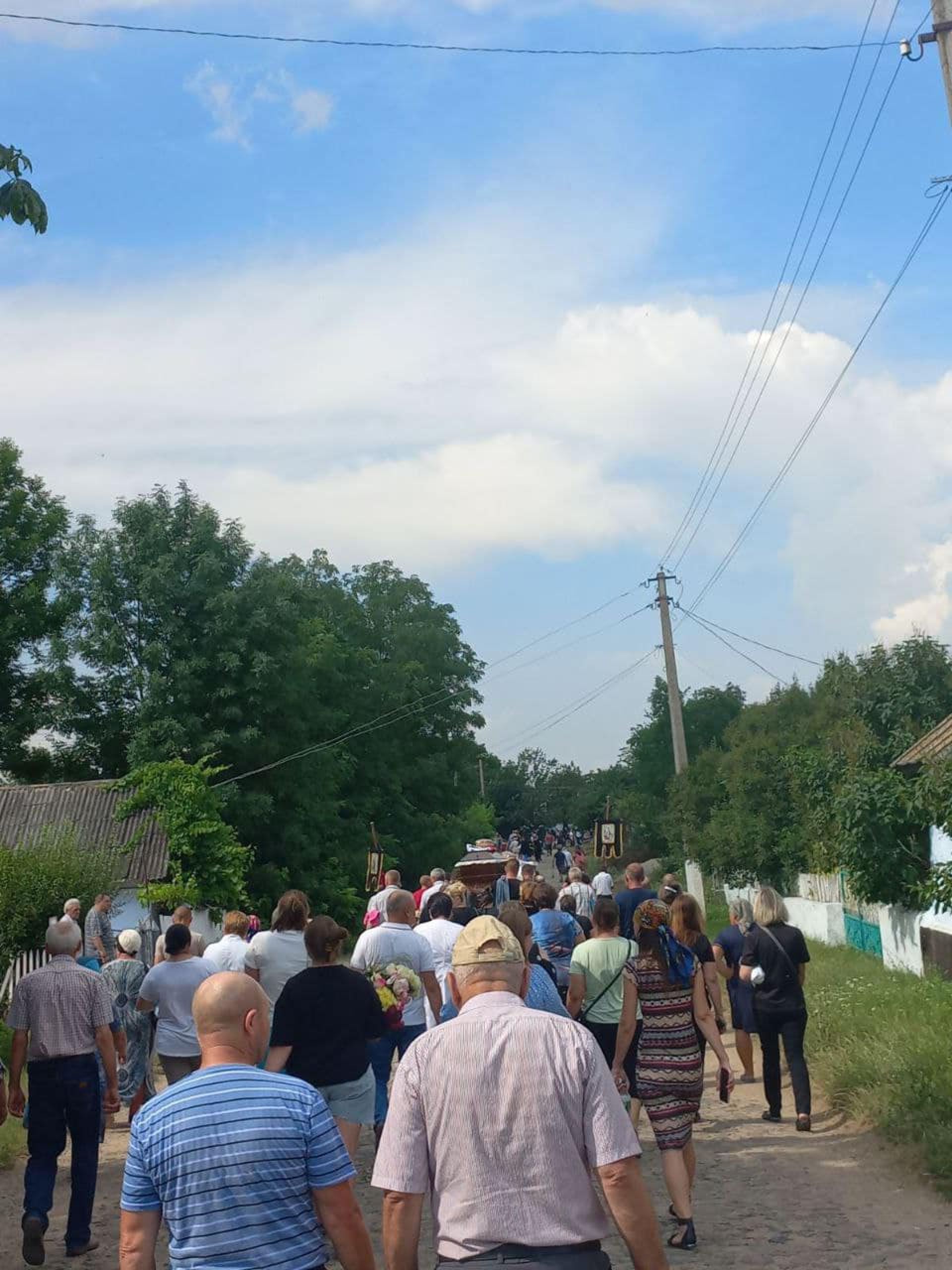«11 липня 2024 року, священнослужителі Вендичанського округу Могилів-Подільської єпархії на чолі з благочинним протоєреєм Анатолієм в Хресто-Воздвиженському храмі села Слідів звершили чин відспівування загиблих невинно вбитих мирних жителів села: 40-річної жінки з двома дітками 9-ти та 10-ти років, які трагічно загинули 8 липня внаслідок ракетного обстрілу російськими військами міста Києва, — цитуємо допис. — Духовенство єпархії висловлює щирі співчуття чоловіку та рідним невинно вбитих загиблих. Вічний спокій їхнім душам. Вічна Пам'ять»!