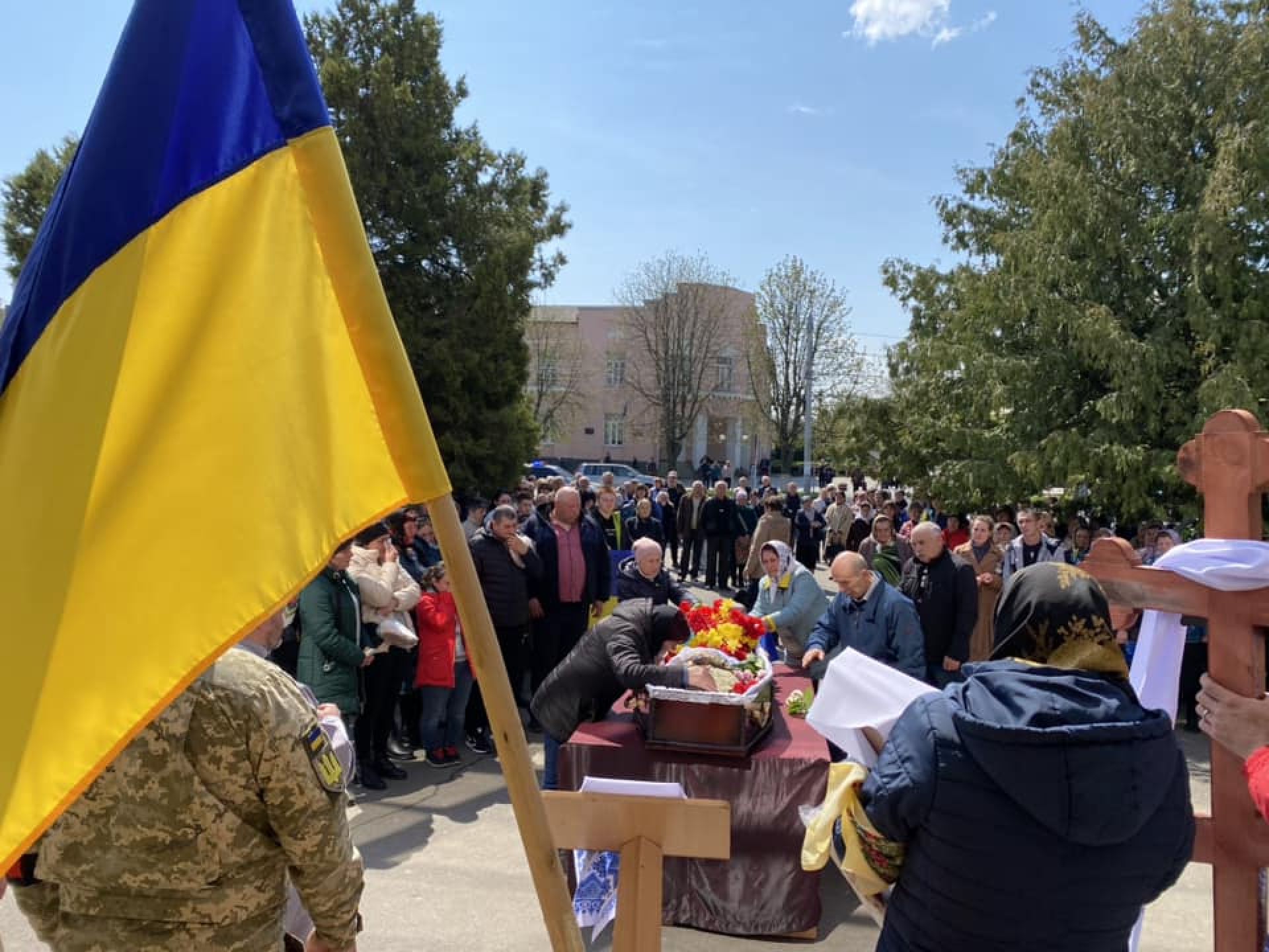 - Вчора, 22 квітня, у рідному місті Юрія поховали. Місцеві жителі утворили коридор шани та гідно провели воїна в останню путь.