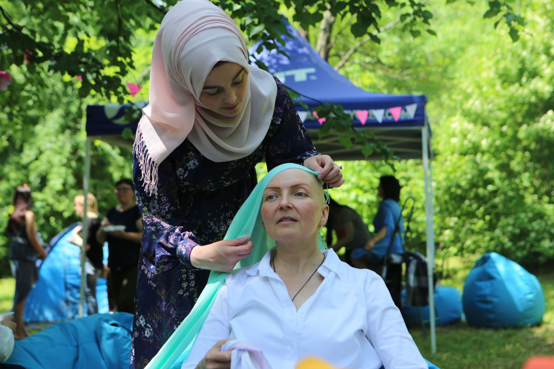 Дві з них у хіджабах. Вони роблять усім охочим тюрбани. Усі охочі – це переважно лисі жінки. Їх тут чомусь аж з десяток. Не знаючи мети заходу, можна здивуватися цьому явищу. Та ще більш дивує причина, з якої зібралися ці люди.