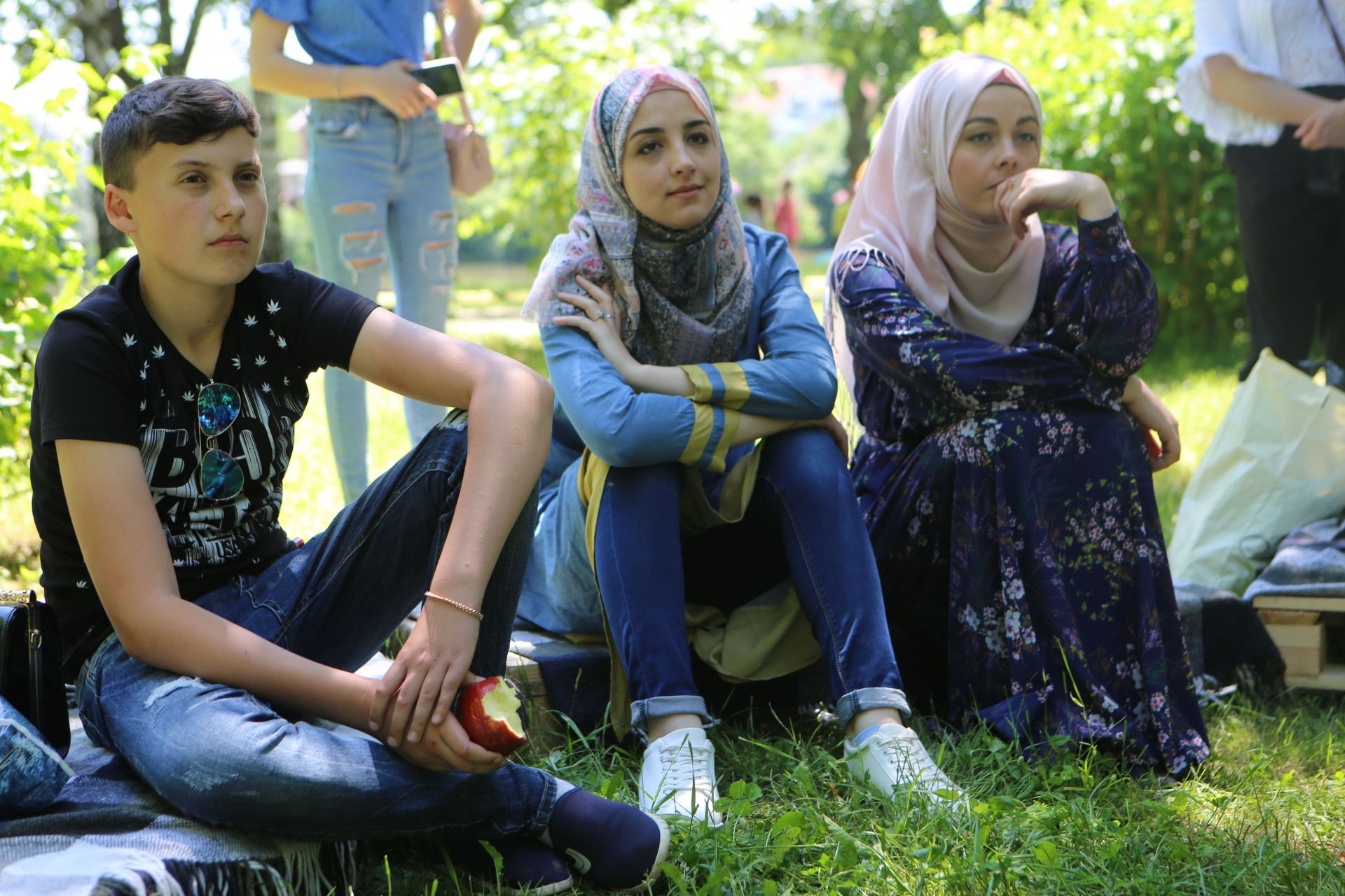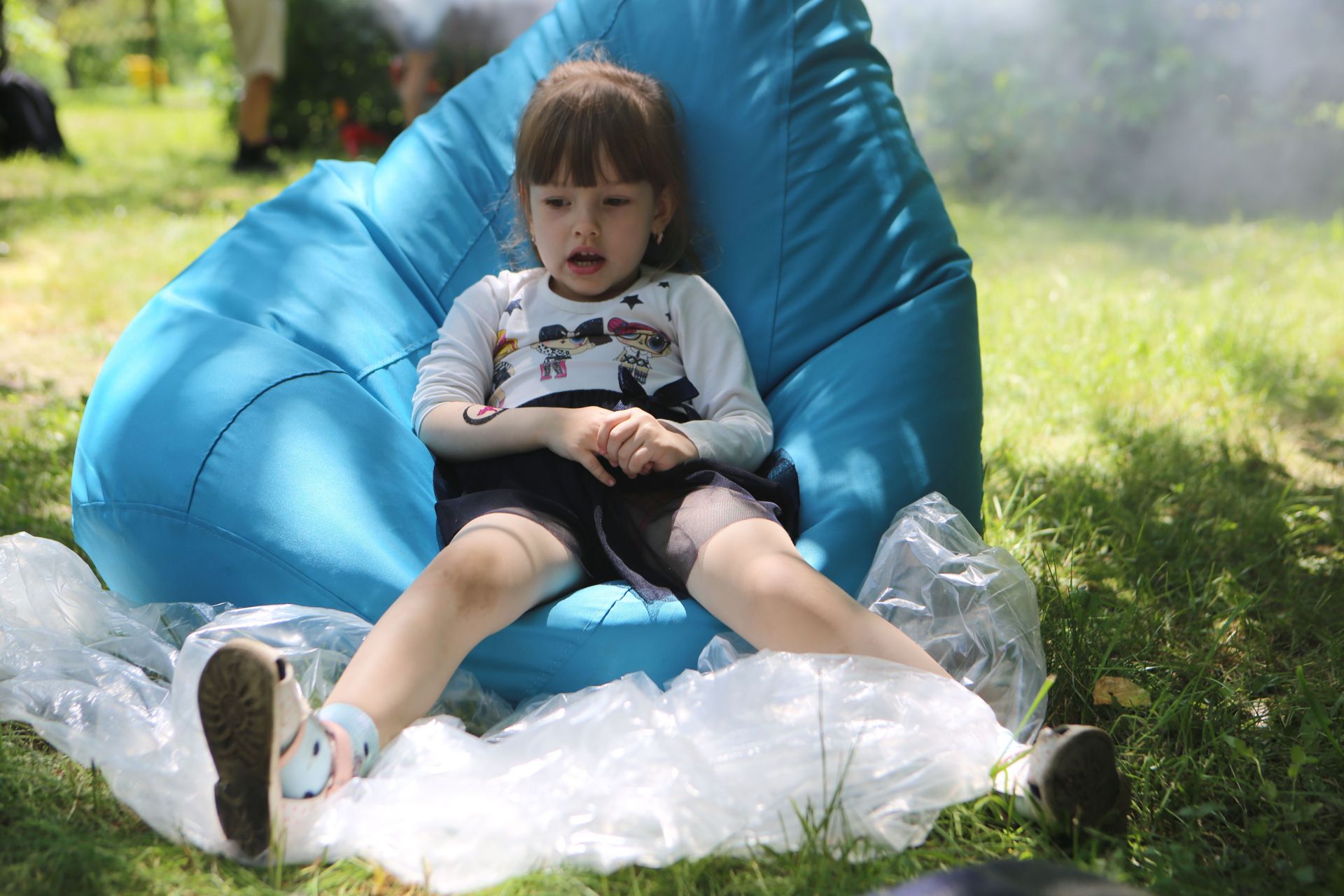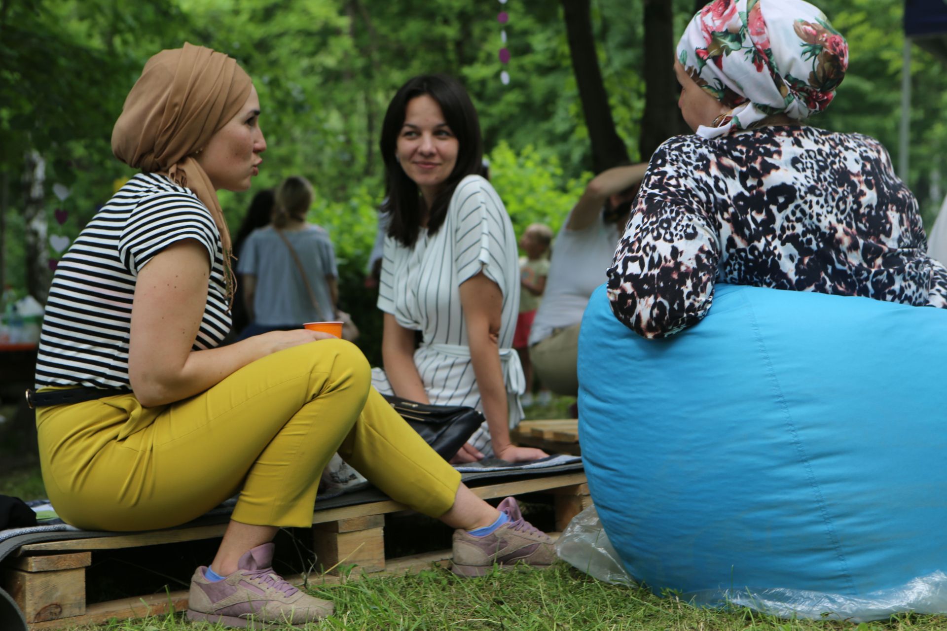 Посередині розстелені каремати та розкидані крісла-мішки. Ще кілька наметів на випадок дощу, колонка, що не гучно відтворює музику та, звичайно, люди. Усі вони різного віку. Але здебільшого зібралися тут жінки.
