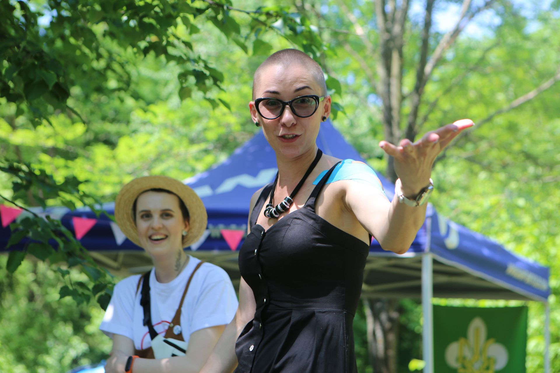 Ліворуч від них кілька чоловіків смажать ковбаски та м’ясо. Легкий літній вітерець розносить просякнуте шашликами повітря по всьому табору, тим самим пробуджуючи апетити присутніх. Трішки далі, з тих дерев’яних столів, ваблять різнокольорові макаруни, рулети, фрукти та напої