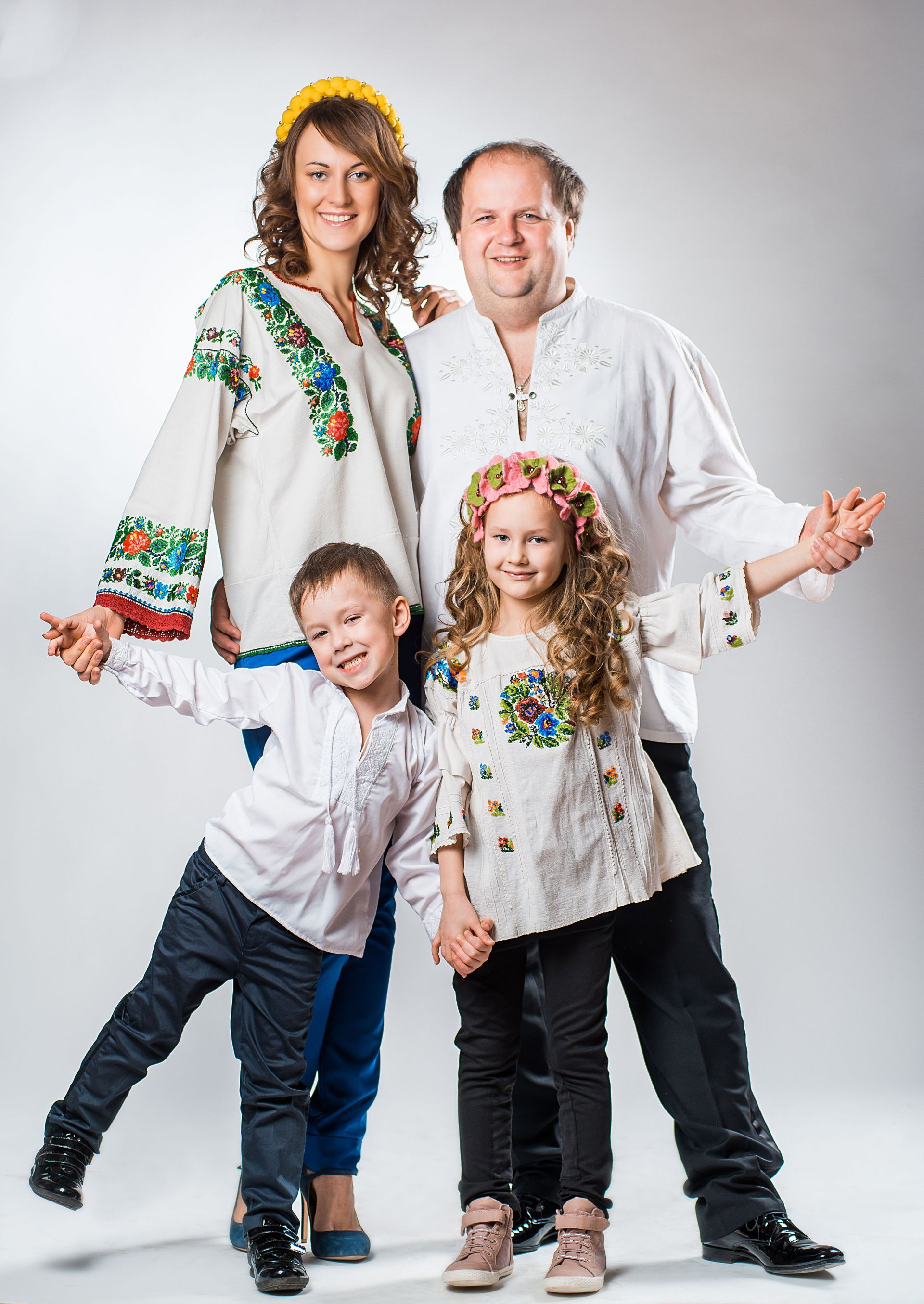 Сьогодні чимало гарних вишиванок мають і наші діти. Адже я давно маю традицію: коли буваю у різних містах, купую нові цікаві вишиванки для себе і родини. Зокрема, у дочки Єви є дуже гарна старовинна буковинська вишиванка — вишита бісером на самотканному полотні.
