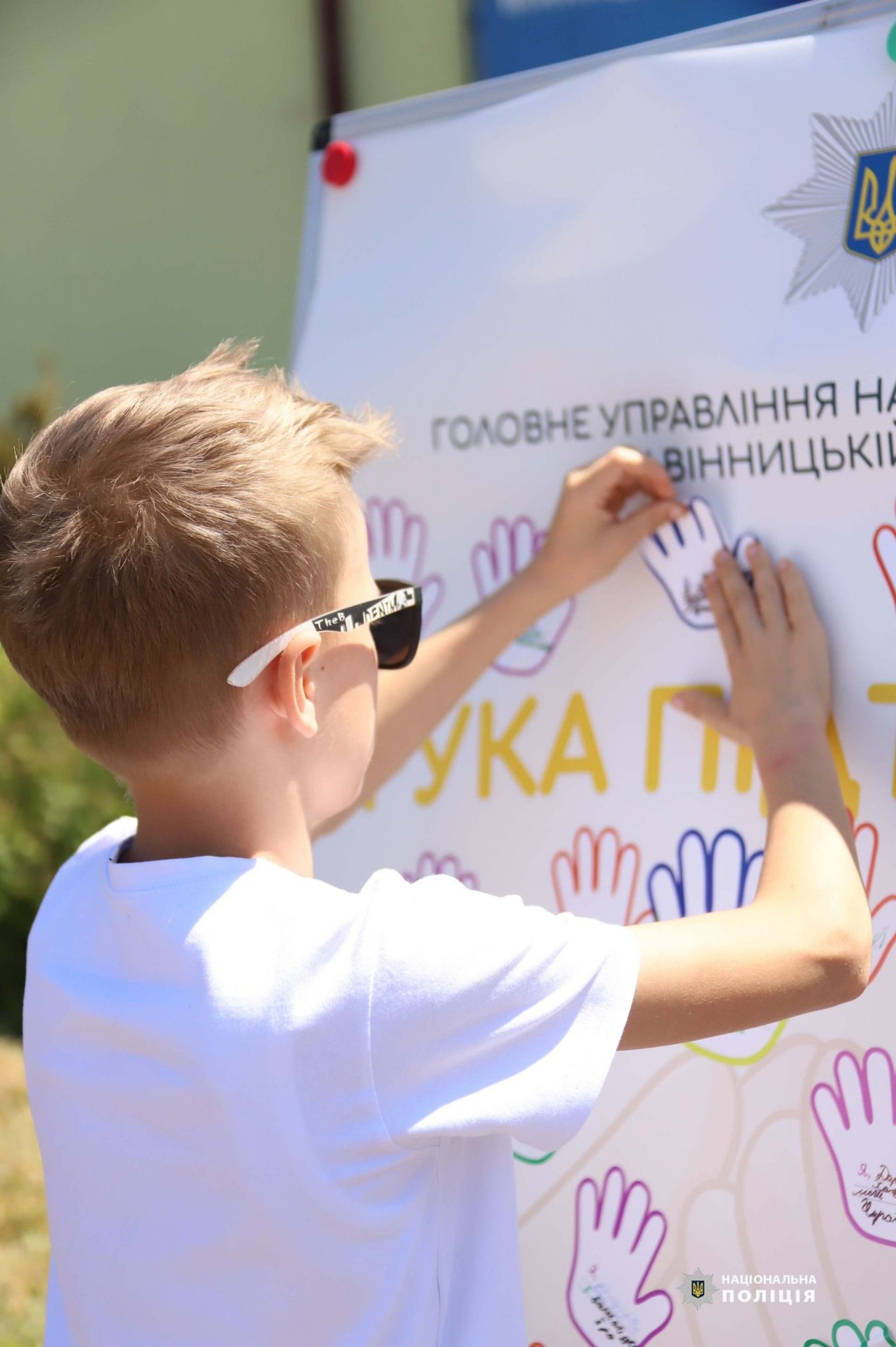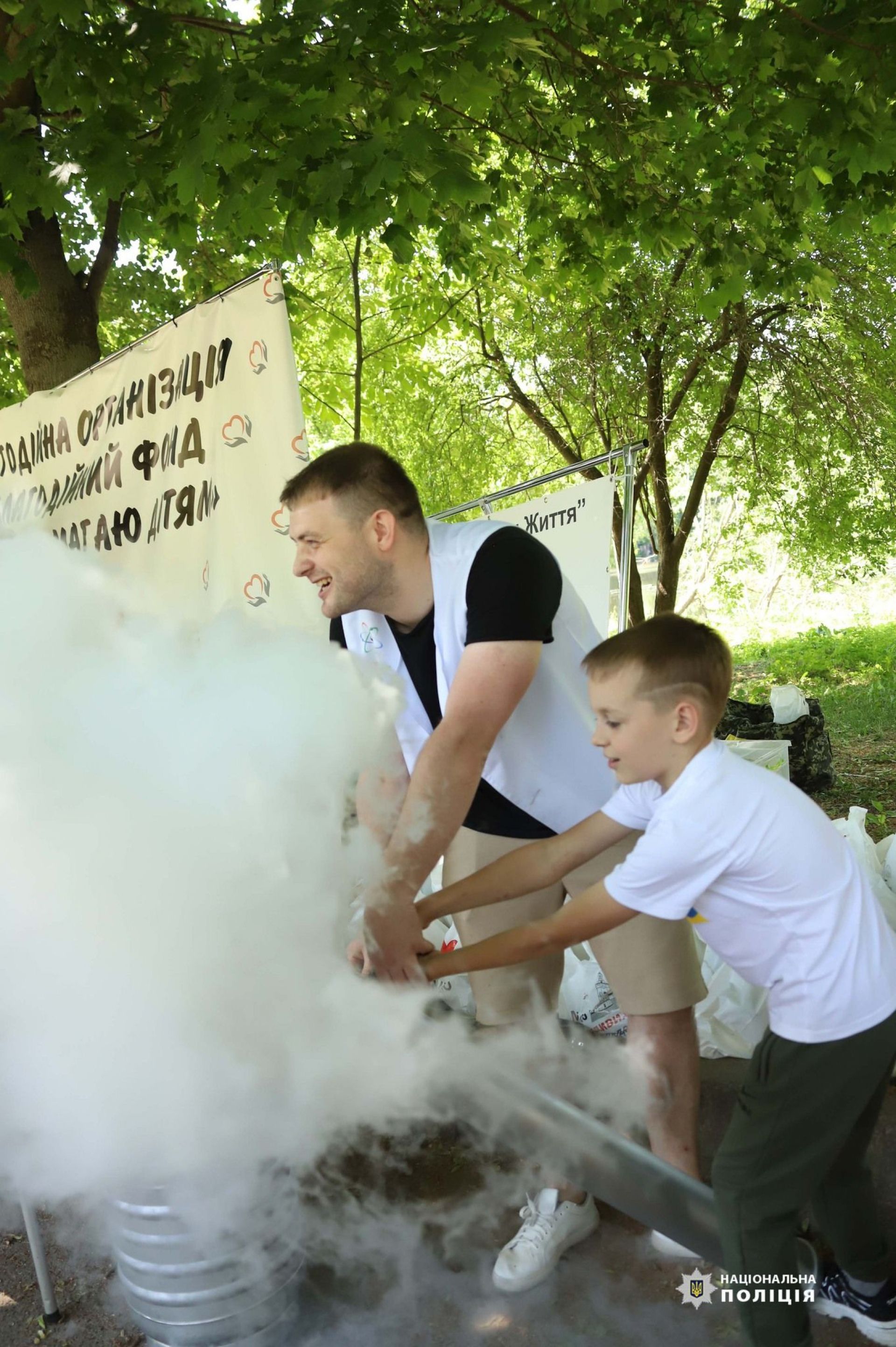 — Мужні та сильні діти випробовували свої сили у поєдинку зі спецпризначенцями роти поліції особливого призначення. В центрі дитячої уваги був кінологічний центр поліції області, які продемонстрували роботу службових поліцейських собак та лабораторія із виготовлення кукурудзяних паличок. Криміналісти поділились з гостями секретами, які допомагають поліцейським збирати «зачіпки» та докази злочинів, — розповідають про захід у поліції Вінницької області. — Тривалий час діти не могли залишити й вибухотехнічну локацію. Спеціалісти-вибухотехніки розповіли дітям про небезпеку, яку можуть нести підозрілі предмети. Поліцейські нагадали дітям правила безпеки, які врятують життя та здоров’я. Разом із патрульними поліцейськими дітки вчились правилам дорожнього руху. А поруч із рятувальниками маленькі гості відчули себе справжніми вогнеборцями, саперами та водолазами!