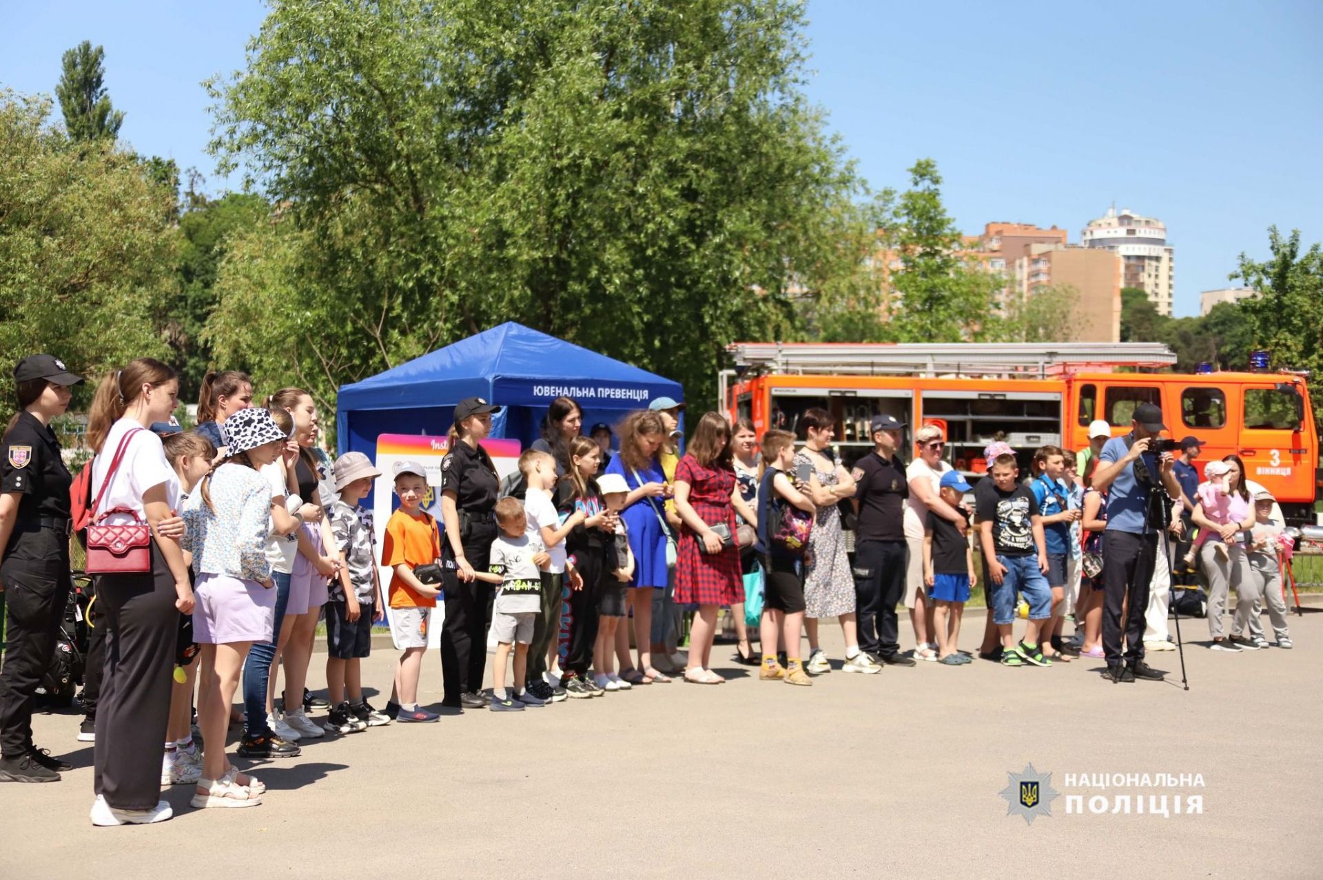 На території спортивного комплексу «Динамо» влаштували свято з 16-ма локаціями. Волонтери, поліцейські та рятувальники розважали діток, розповідали цікавинки та знайомили з професійним інвентарем.