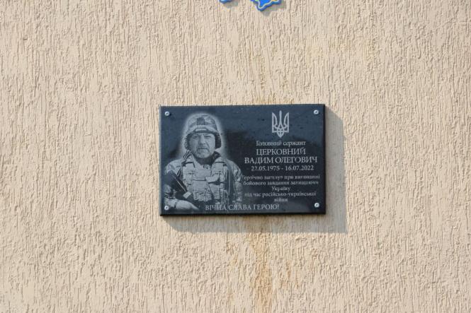 - Вадим Церковний загинув рік тому — потрапив під ворожий артилерійський обстріл. У річницю гибелі воїну відкрили пам'ятну дошку.