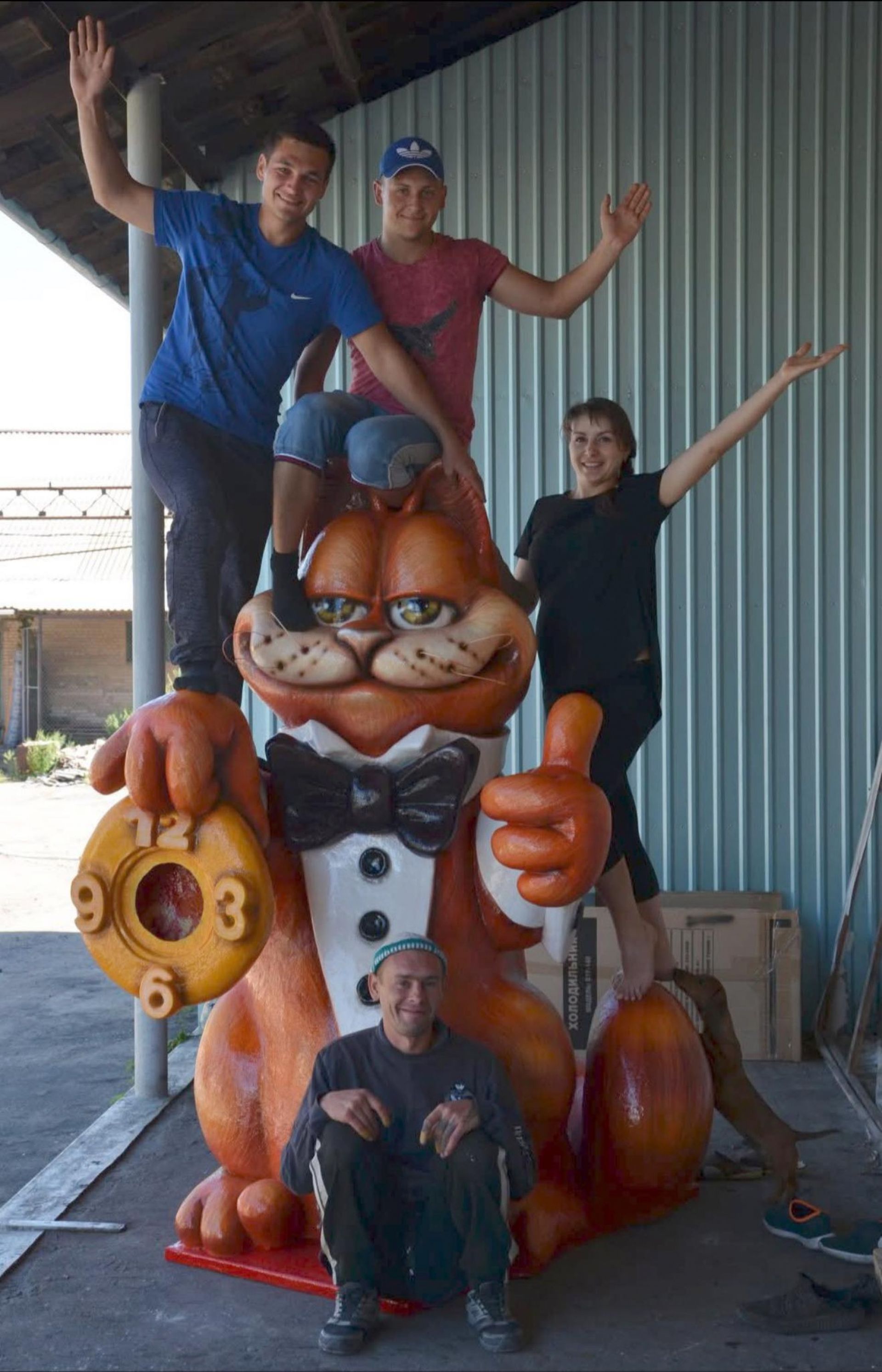 У його «колекції» — 6-метровий буйвол у вінницькому парку (ліпили ще студентами), вовк біля кафе на автовокзалі в Гайсині, а також Гарфілди, пастухи та навіть Спайдермени.